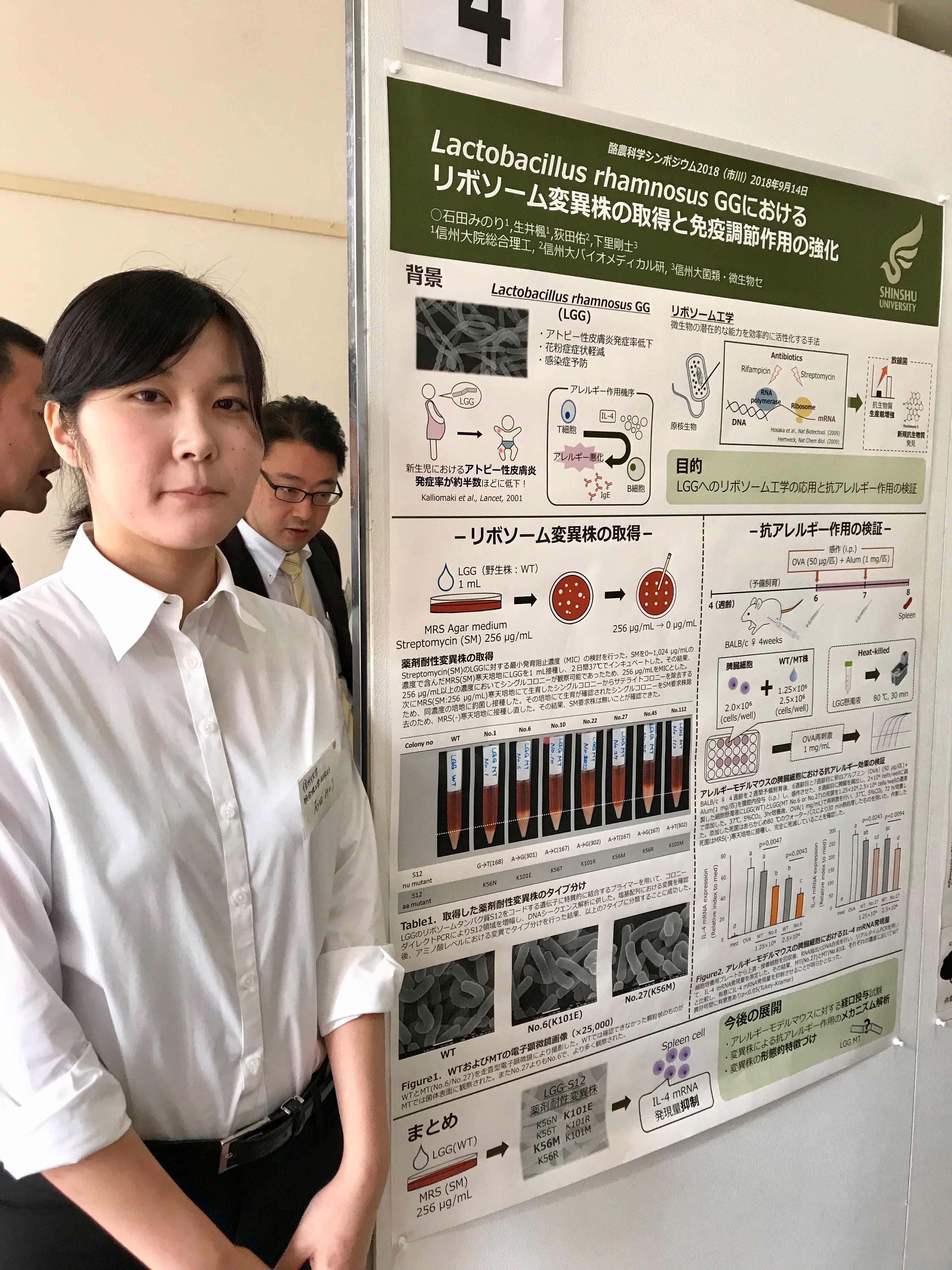 酪農科学シンポジウム2018に参加しました! 和洋女子大学(千葉県市川市)にて 写真左から:渡邉くん(M)、杉村くん(M2)、生井くん(M2)、石田さん(M1)の4名が出席しました。 祝:若手優秀ポスター賞 受賞!! 生井くん(M2) 無冠の帝王を返上!?M2の生井くん、学術賞初めてのGetです!!