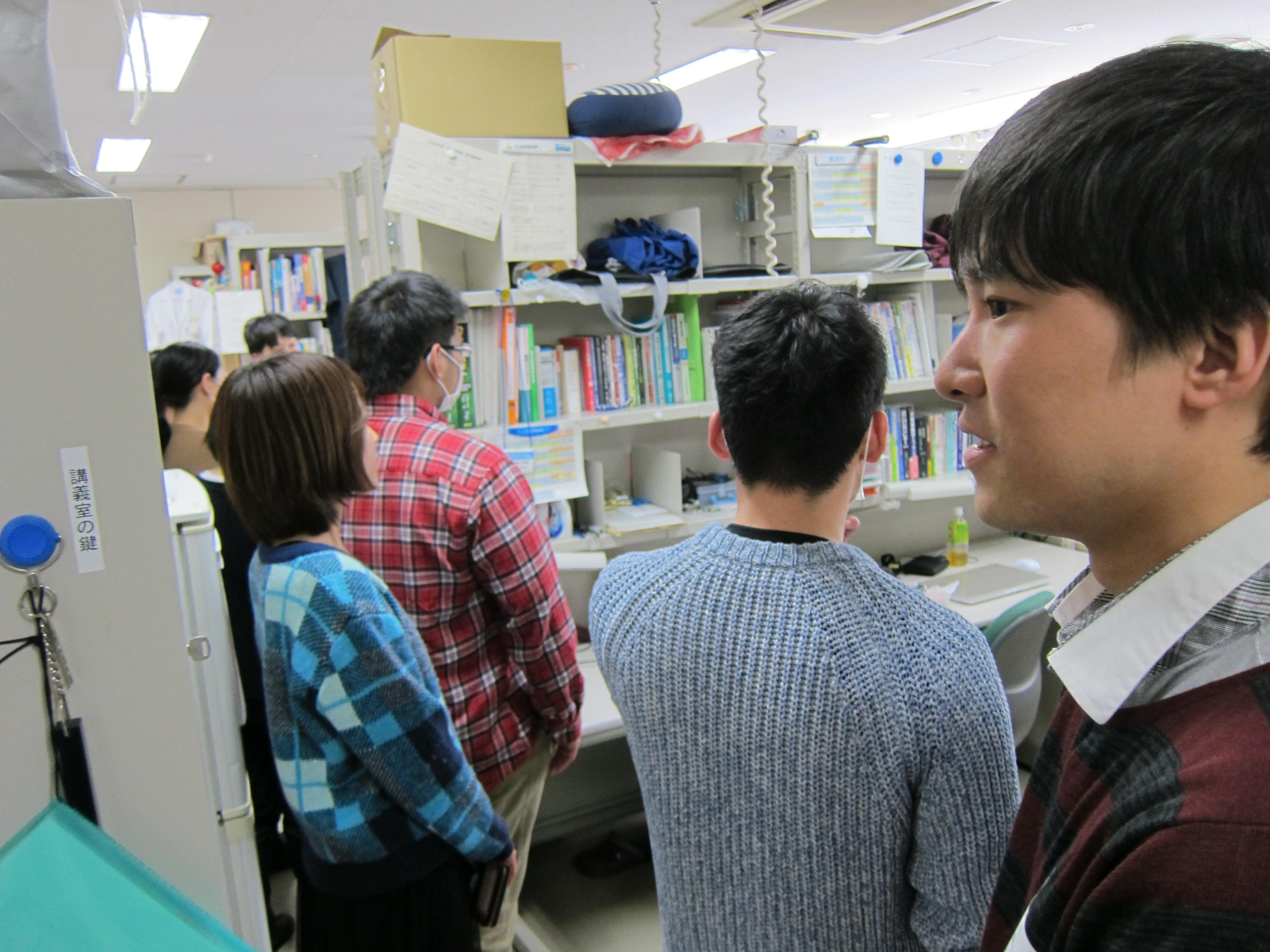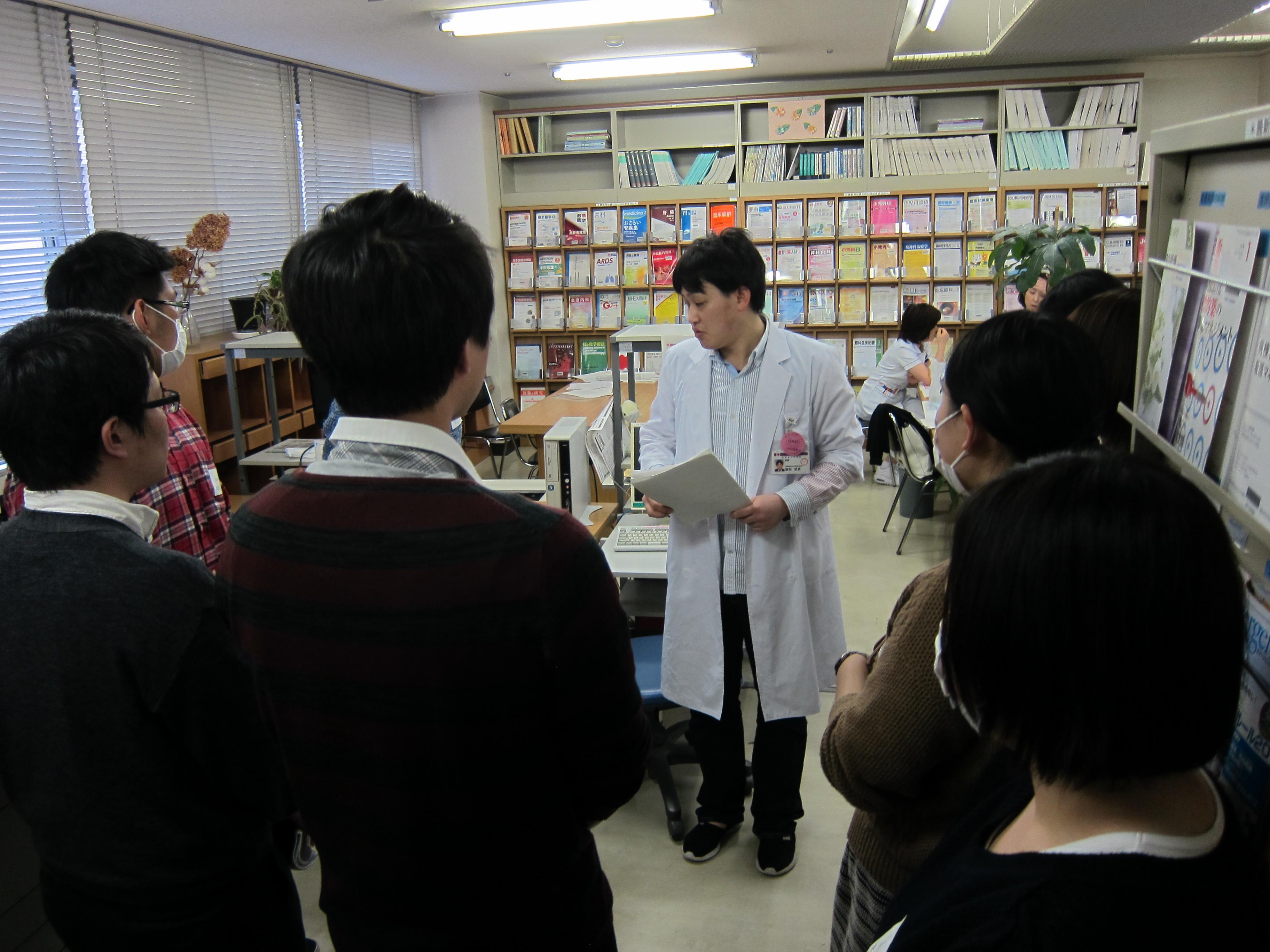 さらに、研修医室、ヘリポート、医局図書室、外来治療室、救援物資保管室、などをグループ別に見学しました。