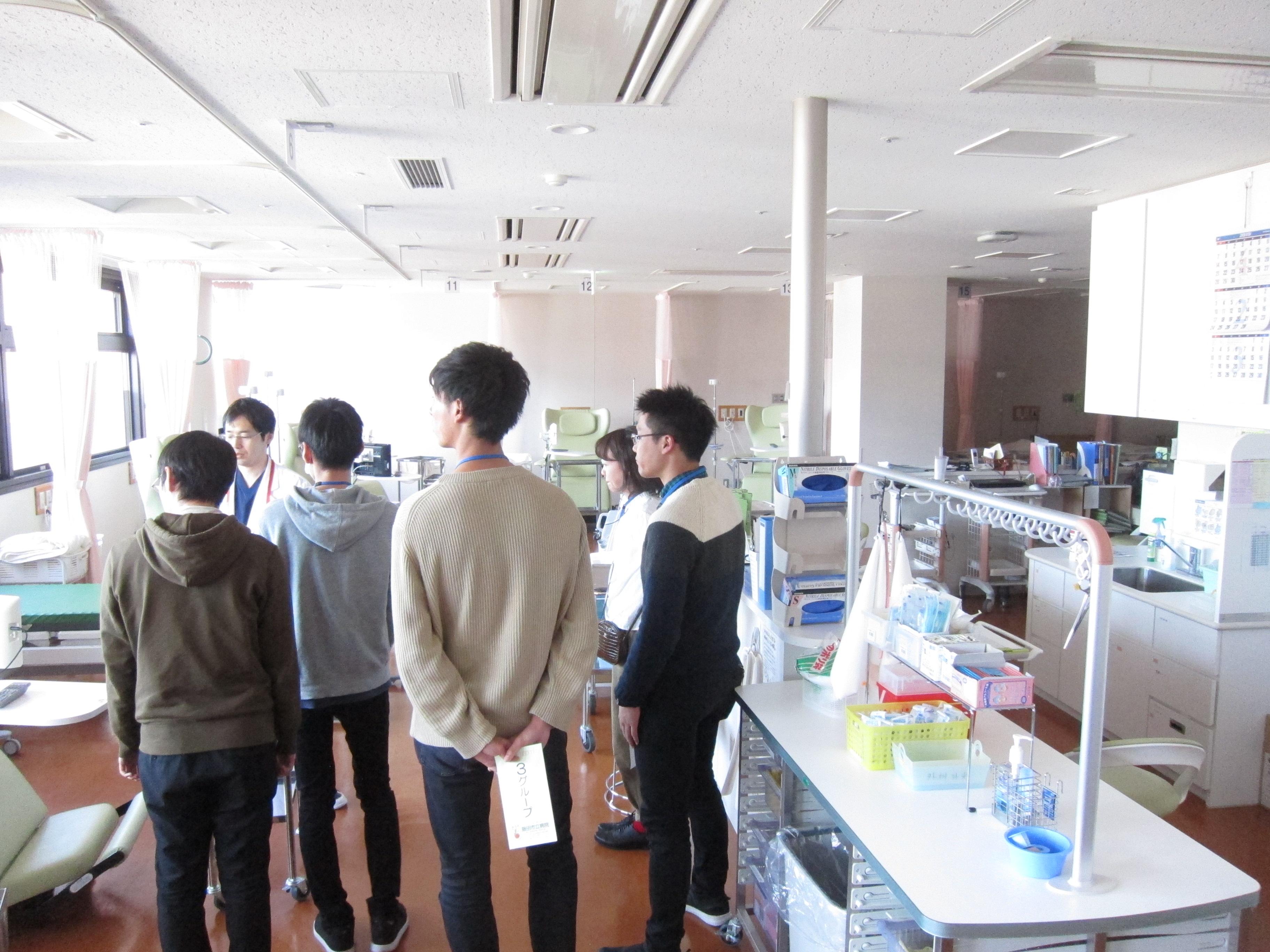 その後6グループに分かれて、医局、血管造影室、リハビリテーション室、がん診療・緩和ケアセンター、放射線治療センター、救命救急センターの6か所を見学しました。