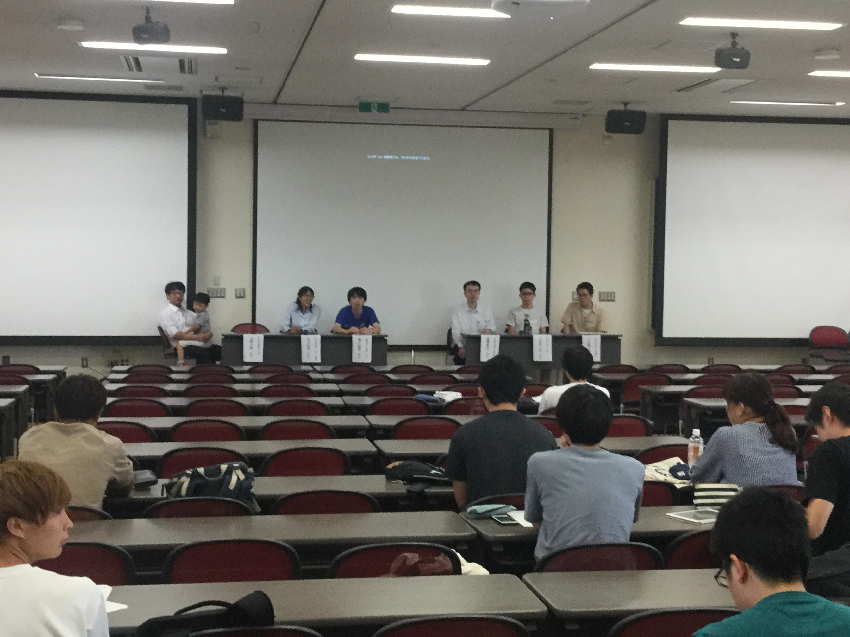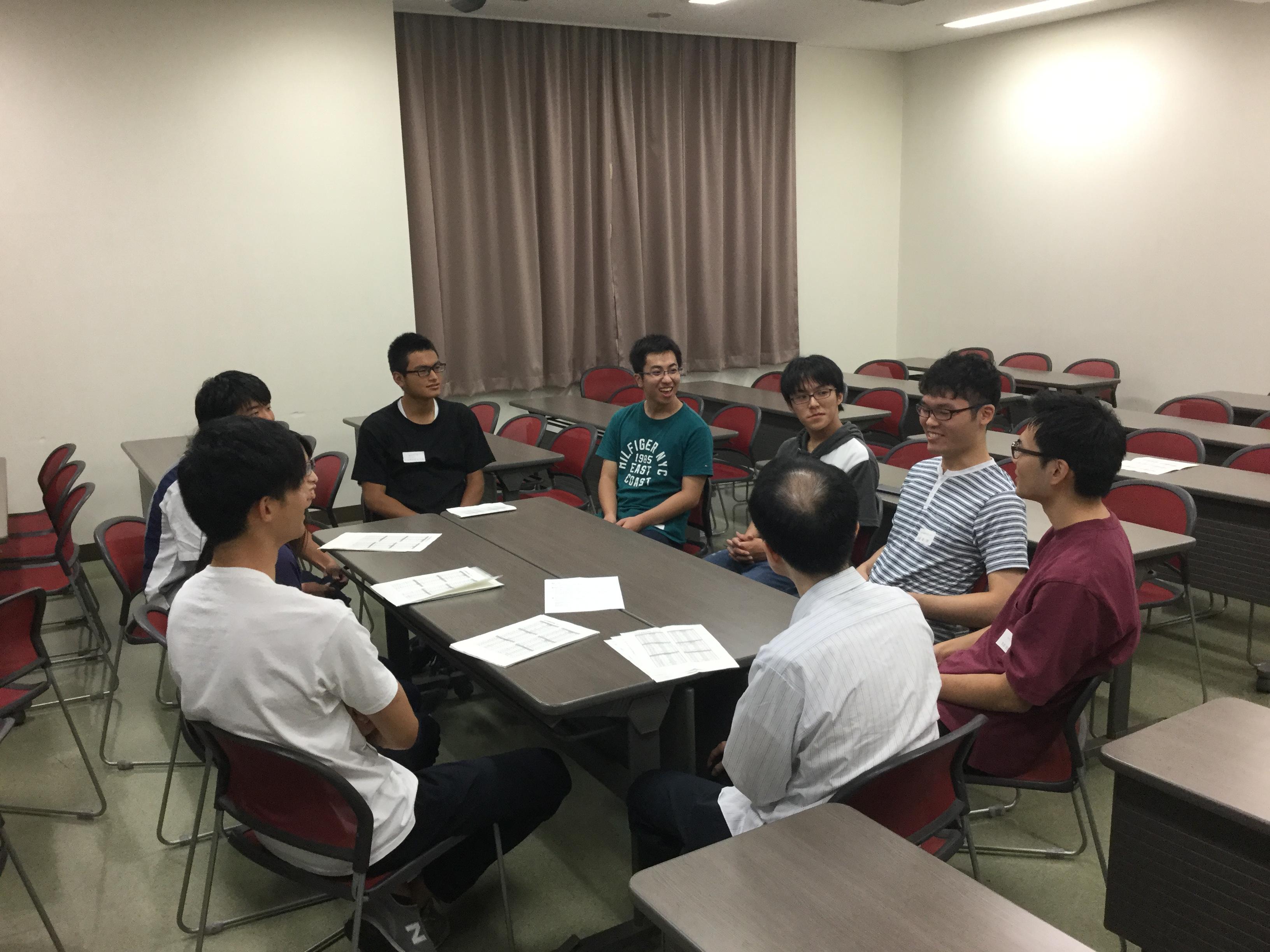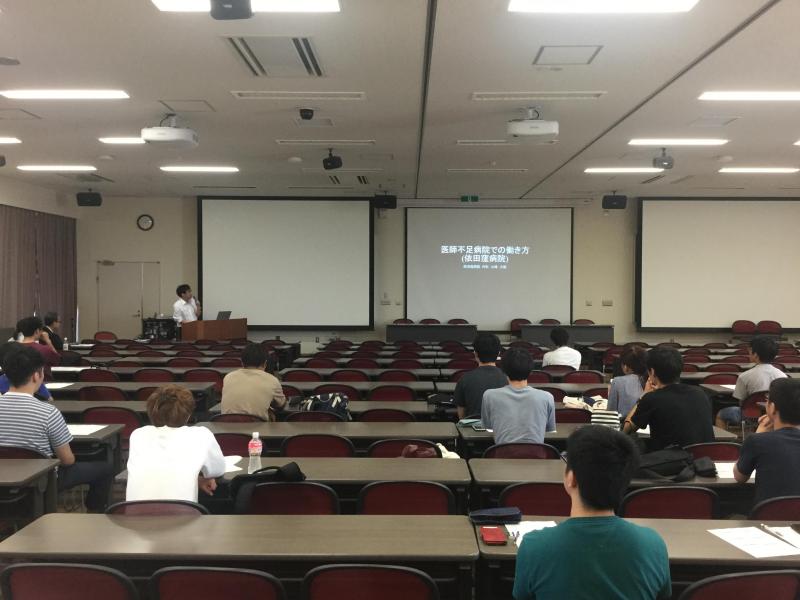 「令和元年8月24日(土)信州大学松本キャンパス旭総合研究棟9階講義室にて、夏季交流会を開催しました。7名の医師と54名の学生の参加がありました。依田窪病院内科の山崎先生と県立木曽病院救急科の北川先生による「医師不足病院での働き方」をテーマとした講演の後に、6名の医師の皆さん(同じく北川先生、安曇野赤十字病院外科柳沢先生、長野赤十字病院血液内科植松先生、北信総合病院腎臓内科倉澤先生、伊那中央病院外科小林亮先生、信州大学画像医学教室小林健先生)のパネルディスカッションを行いました。その後6グループに分かれて医師を交えて意見交換を行いました。」