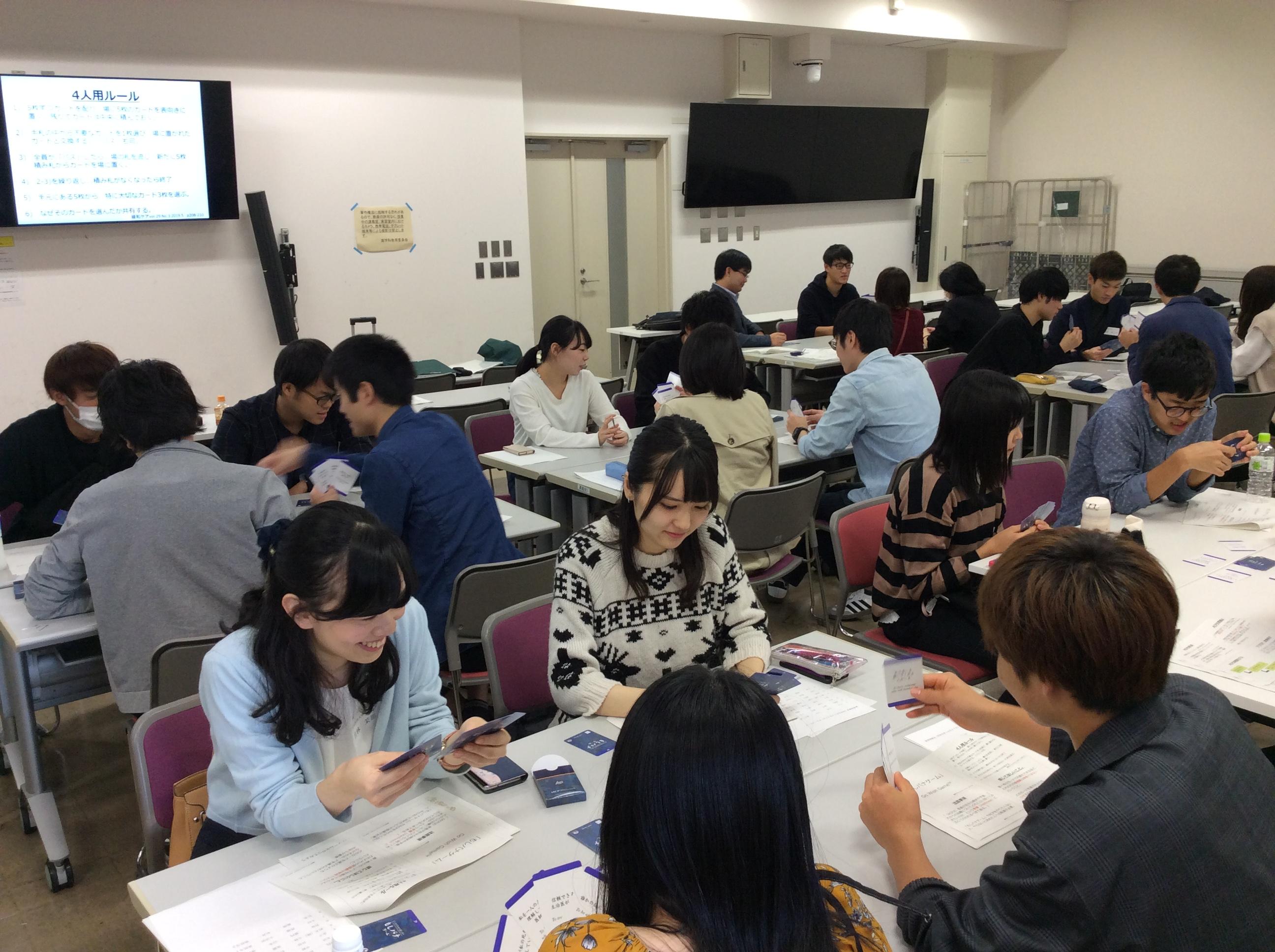 「令和元年10月27日(日)東京医科歯科大学にて秋季研修会を開催しました。1年生から6年まで28名の学生の参加がありました。佐久総合病院総合診療科・南牧村出張診療所所長の小林和之先生の「アドバンス・ケア・プランニング」の講演の後に、4名で一グループとなり、「もしバナゲーム」カードを用いて、人生の最期にどう在りたいか考えていただきました。」