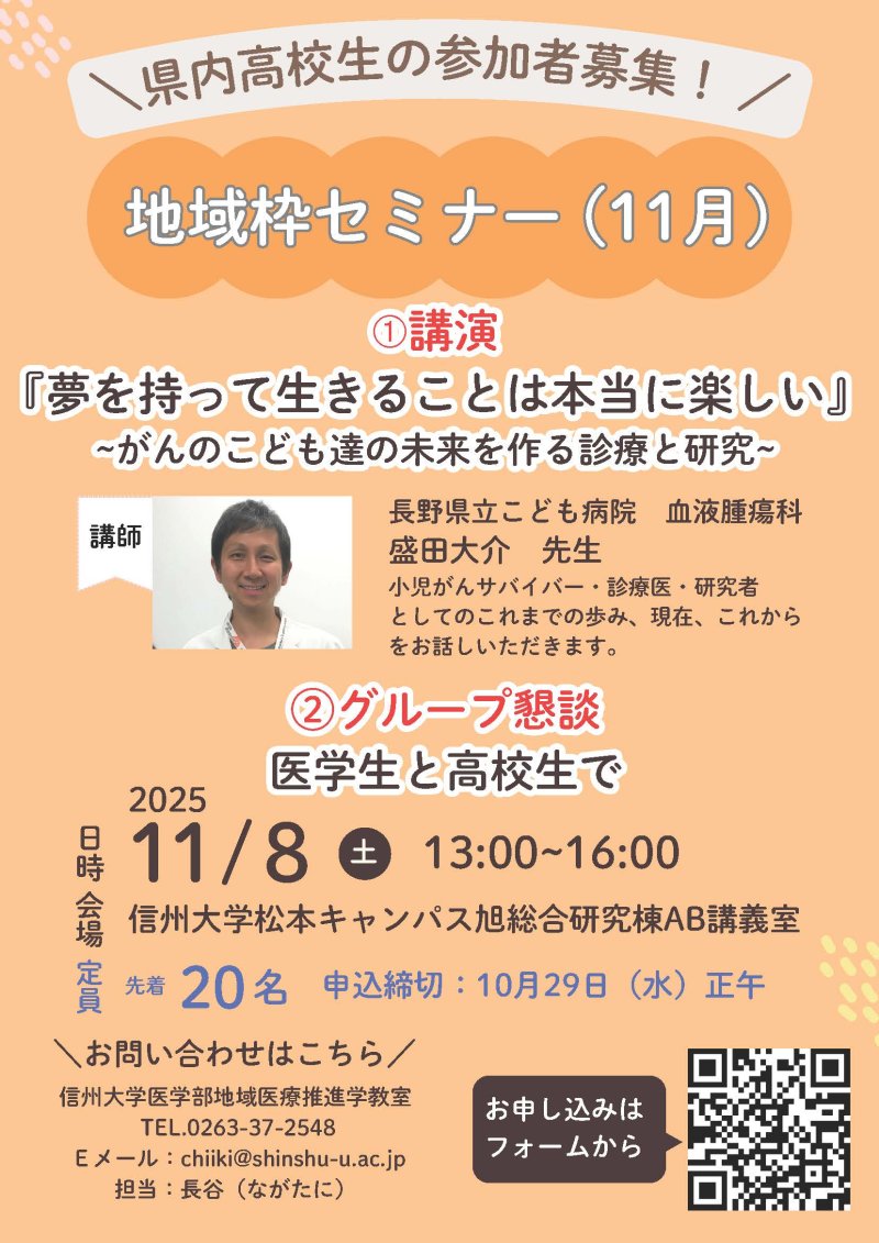 2025年11月8日(土)「地域枠セミナー(11月)」高校生の参加者募集のお知らせ