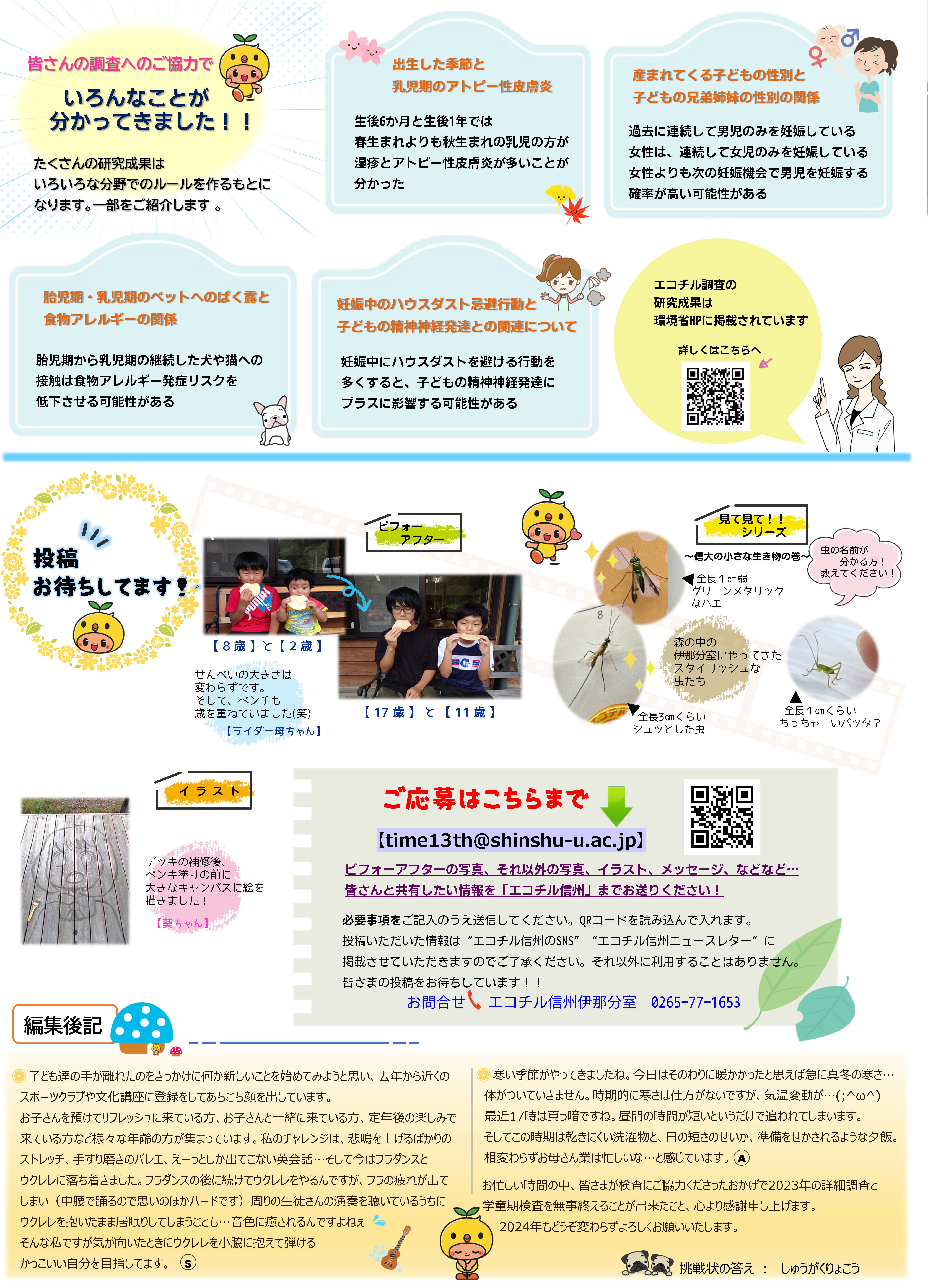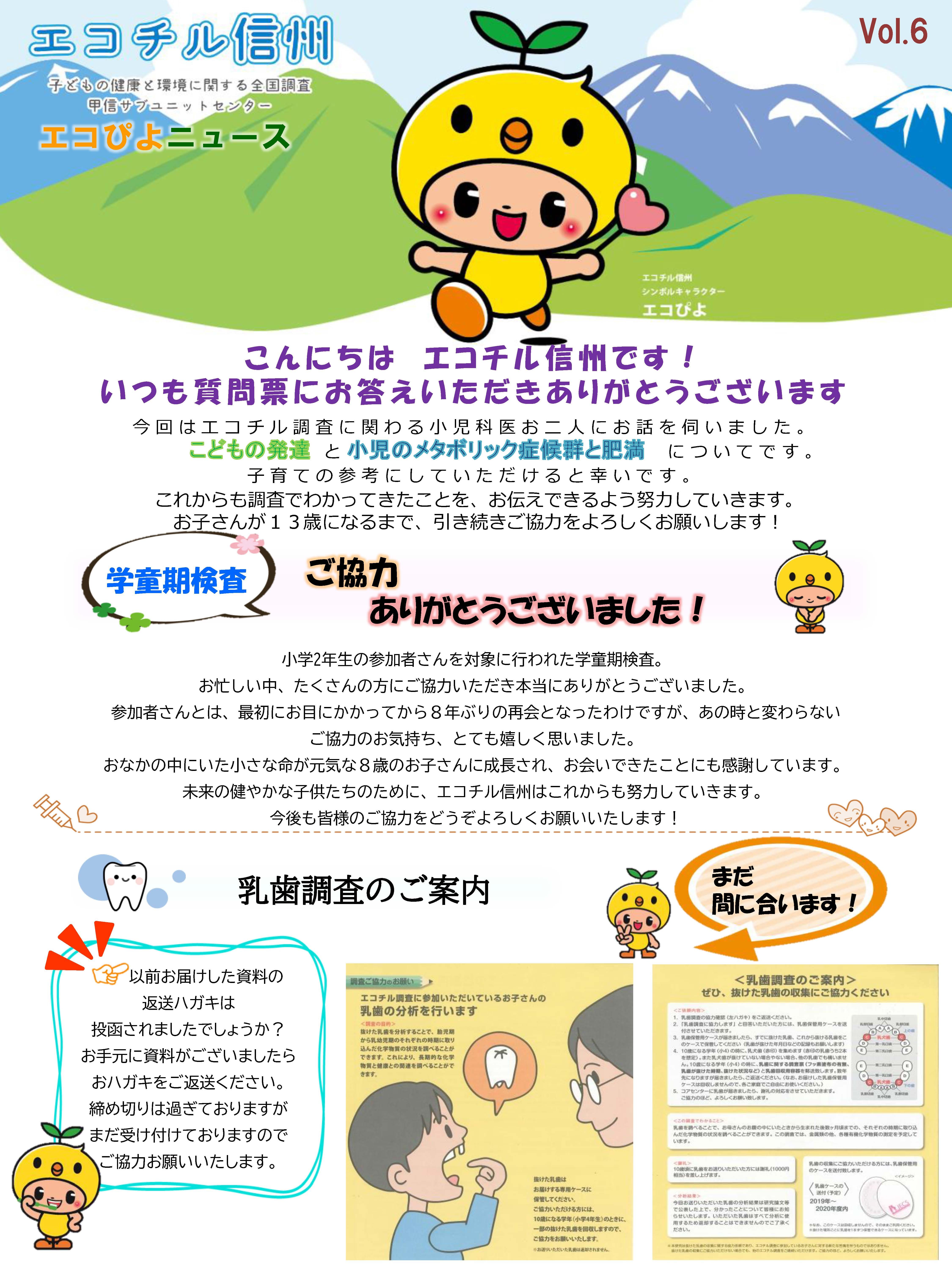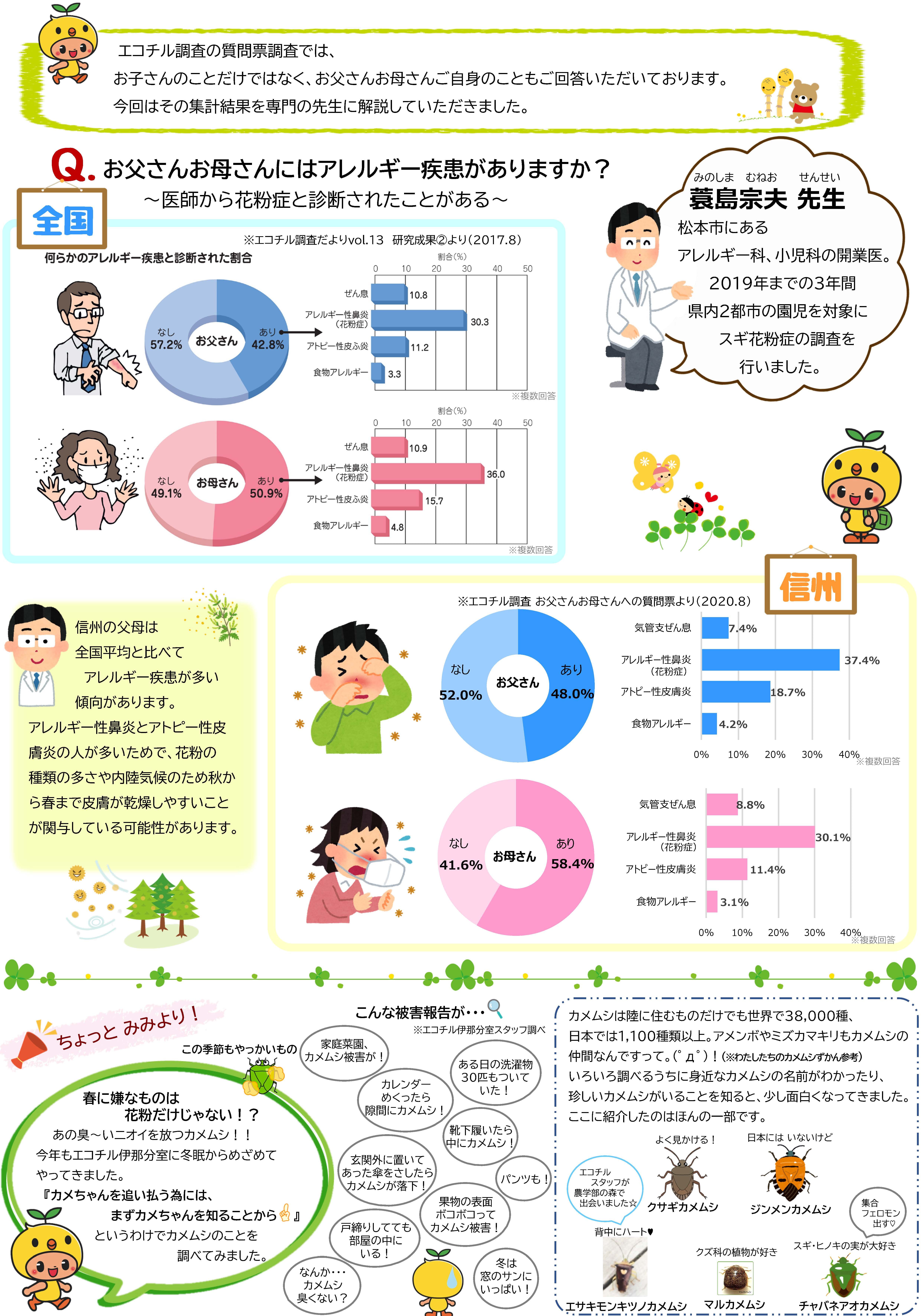 エコぴよニュースでは、エコチル信州と全国の質問票のデータを比較したり、