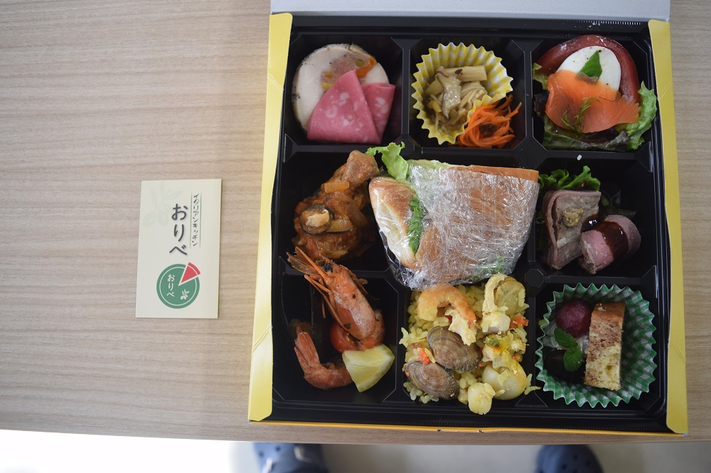 今回のお弁当は、「イタリアンキッチンおりべ」です。あがたの森公園近くにあるイタリアンです。
