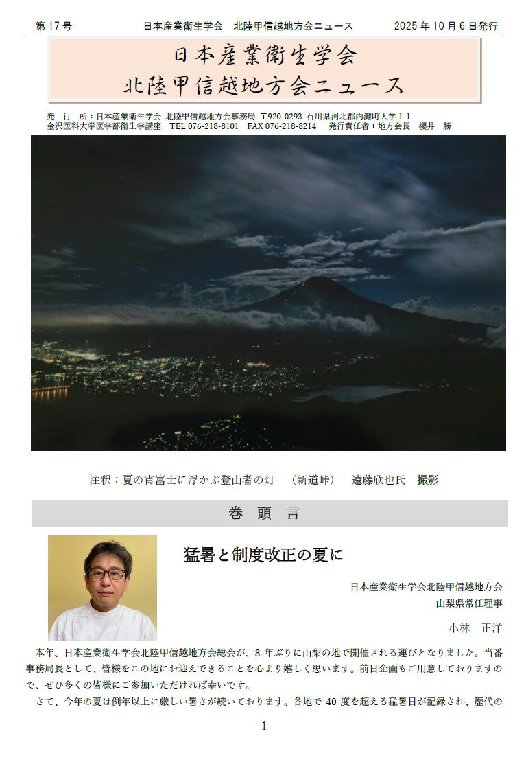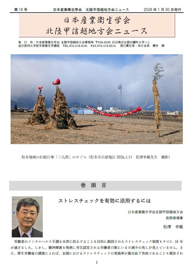 巻頭言『第65回日本産業衛生学会北陸甲信越地方会』 黒田 譲