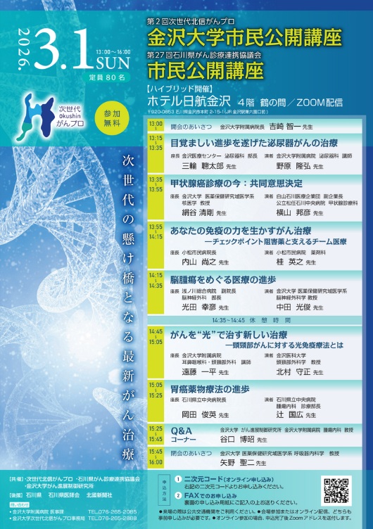 第2回次世代北信がんプロ金沢大学市民公開講座・第27回石川県がん診療連携協議会市民公開講座