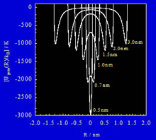 図2.窒素分子とSWCNT内側空間との相互作用ポテンシャルの細孔径Rによる変化