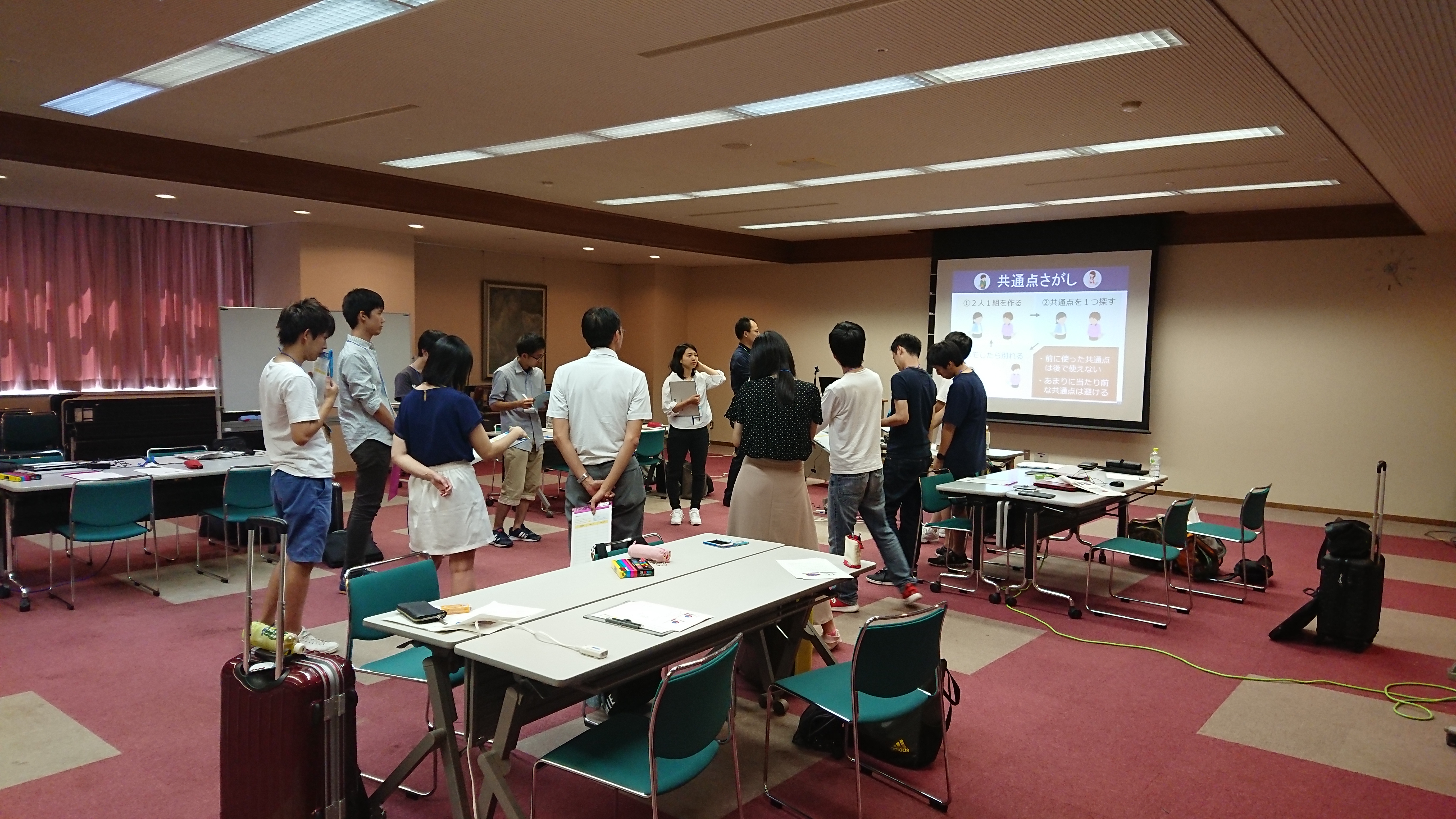 1日目は三大学のコース生12人が福井駅に集合し、マイクロバスで研修会場の公共の宿 すかっとランド九頭竜に移動するところからスタートしました。研修所に到着後、早速、福井大学高等教育推進センター末本哲雄特命講師によるワークショップが行われました。このワークショップの反響は大きく、多くのコース生から「ためになった」「面白かった」と声がたくさん聞かれました。