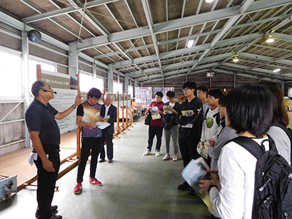 2日目は、群馬県安中市松井田町にある「碓氷製糸農業協同組合」の見学に出かけました。ここは、現在国内に残る製糸工場で最大の工場です(注釈:現在、国内の機械製糸では、碓氷製糸と山形県の松岡製糸の2か所のみ)。繭を運び受ける荷受所からスタートし、実際に蚕の繭から糸が作られる工程に沿って工場内を見学して説明を受けました。コース生達は初めて目にする光景に目を丸くしながら、品質の高い繭を作るための努力や工夫の説明に、メモを取りながら耳を傾けていました。また、各工程で動いている機械をのぞき込んだり、作業をしている人に質問したりする姿も見られました。