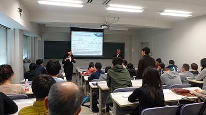 Michielsen先生はとても丁寧な分かりやすい英語を話してくださり、コース生からは聞きやすい授業であったとの感想もありました。講義以外の研究紹介や昼食会の時間には、コース生が積極的に質問する場面も見られました。