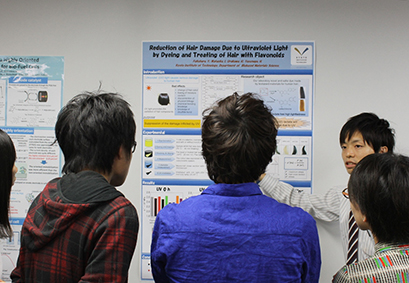 その結果、京都工芸繊維大学の福原雄大君の発表「Reduction of Hair Damage Due to Ultraviolet Light
