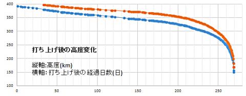 その図に、GINREIの最近2週間の降下カーブを同じ高度でほぼ一致する場所に重ねると、32日ずれた経過日数になります。