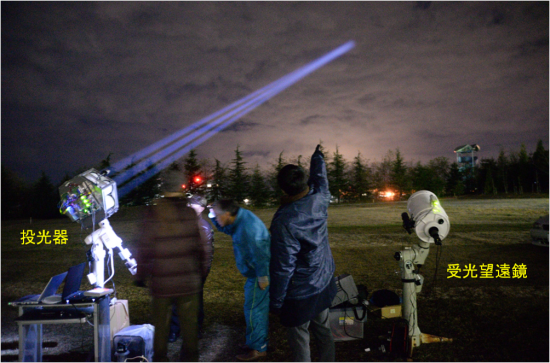 FSK変調された信号の双方向通信実験を行います。地上から「ぎんれい」に向けてLED光を照射し、また「ぎんれい」からのLED光を受光し、そのレベルを測定します。