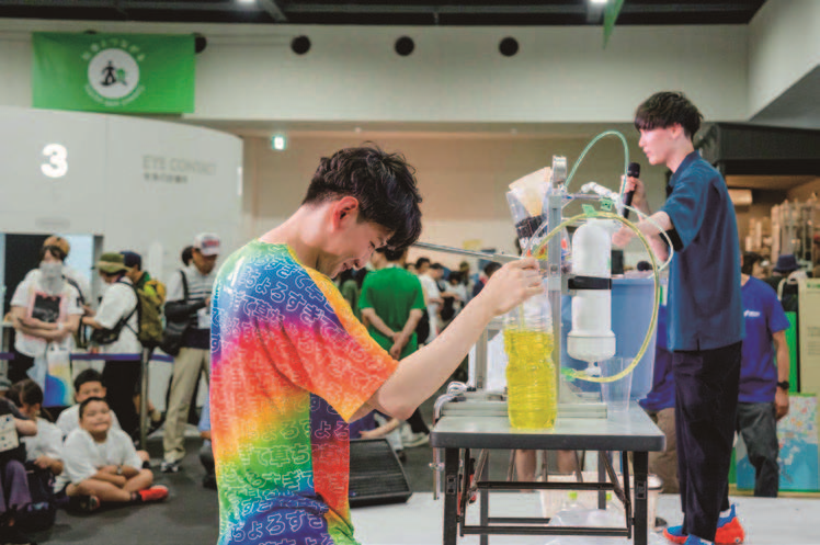 大阪・関西万博で開催された文部科学省主催イベント「わたしとみらい、つながるサイエンス展 ~あなたは、みらいをつくれる人~」のステージイベントで、信州大学は本学卒業生で教育系人気YouTuber「ラムダ技術部」(ラムダさん・ロッシーさん)とコラボレーションし、浄水パフォーマンスを実施しました。「最強の浄水器 vs 激マズ汁」というテーマで、エンターテインメントの要素も取り入れながら、飲むことが難しい水をアクア・リジェネレーション機構 遠藤研究室の「信大RO膜」の浄水技術を使って実際に浄水し、その技術の高さと科学の魅力を伝えました。来場者は、大人も子どもも真剣なまなざしで、パフォーマンスに見入っていました。(文・佐々木政史)