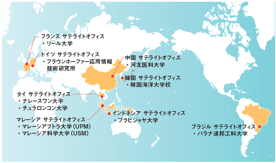 中村:水分野を核とした海外での研究推進にあたって、「本気のサテライトオフィス戦略」というスローガンで、海外サテライトオフィスの展開も強化しています。例えば、韓国海洋大学校やタイのチュラロンコン大学、マレーシア科学大学(USM)など、海外10拠点に展開しています。サテライトオフィスでは具体的な研究交流や教育プログラムを展開しており、互いの強みを最大限に引き出すための戦略的な投資として行っています。