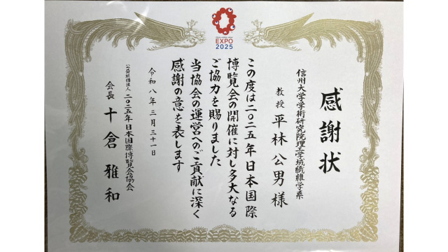 大阪・関西万博におけるユスリカ対策で貢献! 万博協会より感謝状を受領