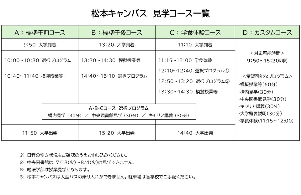 ※上記以外の日時でも大学行事等の関係によりお断りする場合があります。