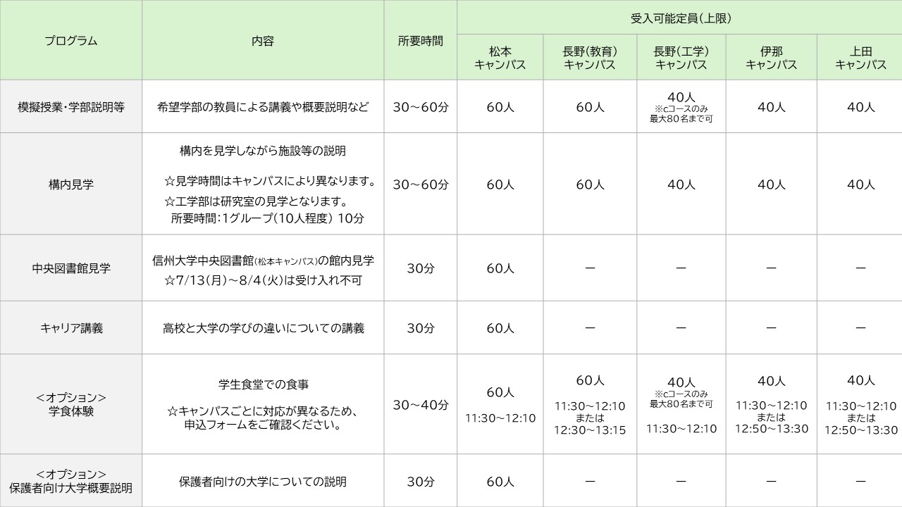 ☆「長野(工学)キャンパス」の申込について
