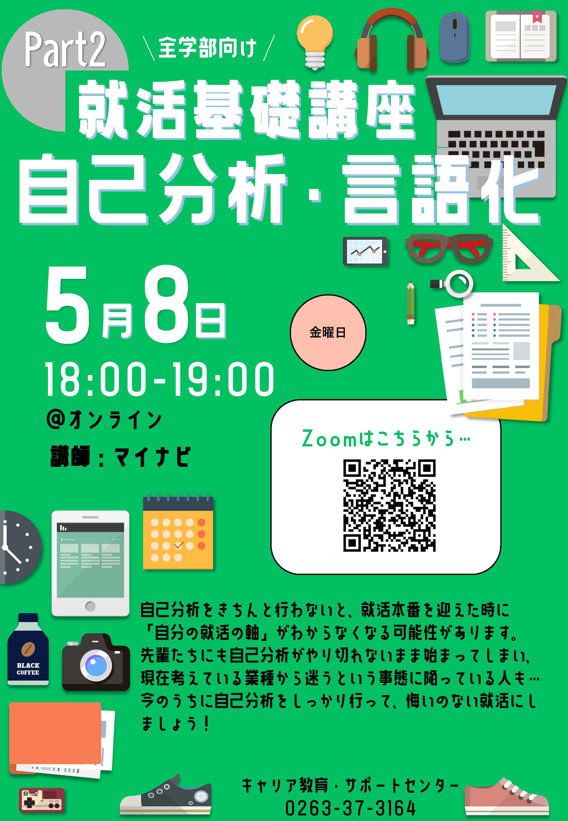 【全学部対象】就活基礎講座Part2「自己分析・言語化」(WEB)