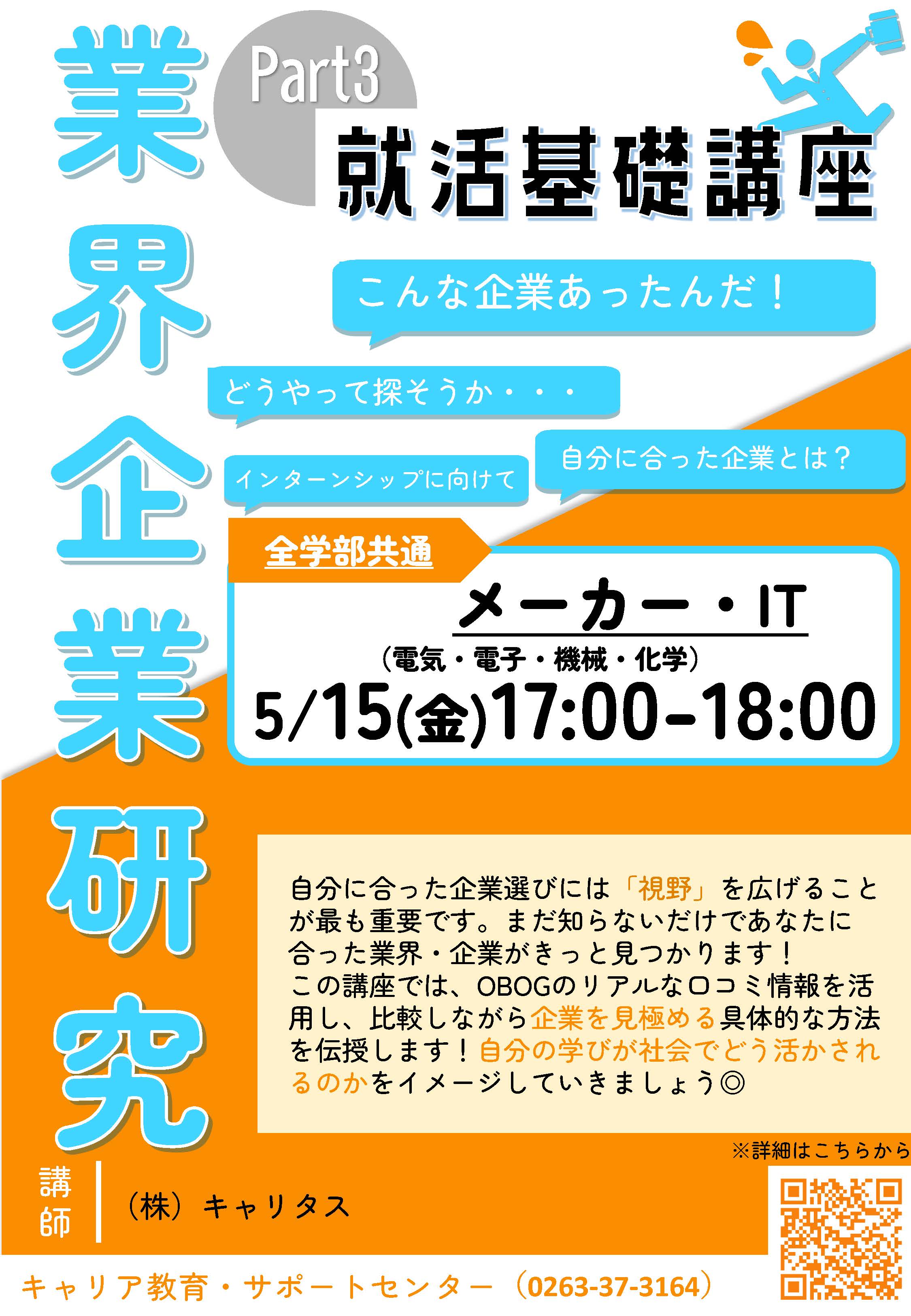 【全学部】就活基礎講座Part3「業界企業研究」(WEB)
