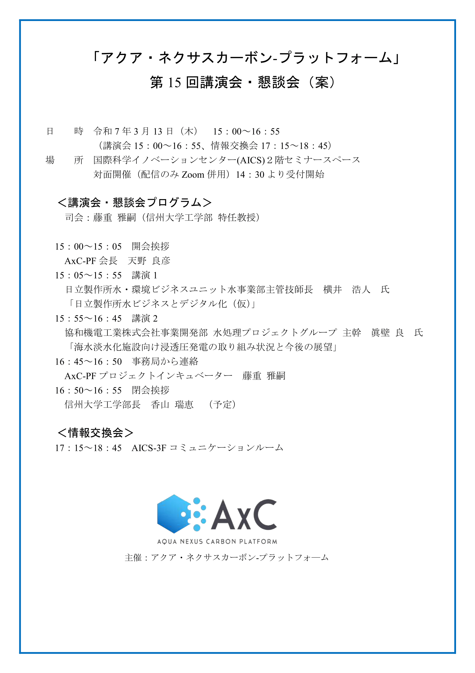 (講演会15:00~16:55、情報交換会17:15~18:45)
