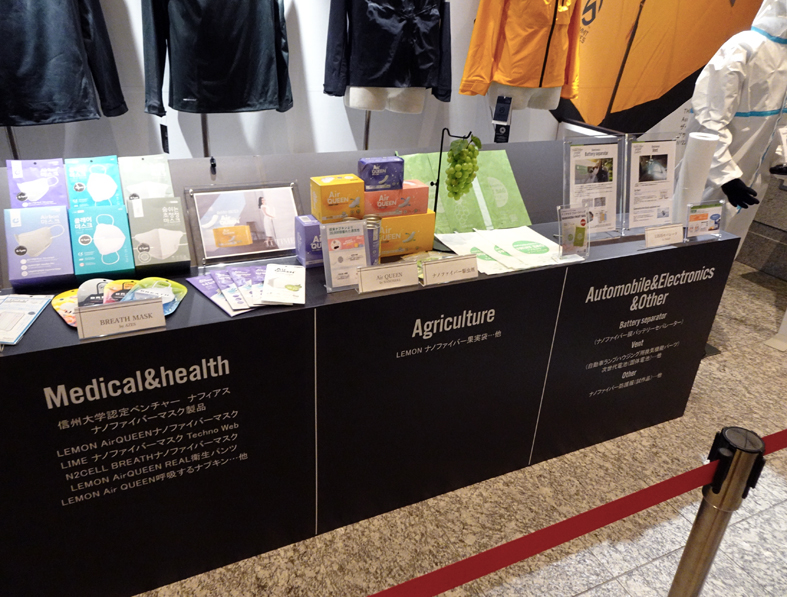 In this exhibit, the products that specialized in industry-academia collaboration in the multifaceted expansion of nanofiber research are chosen and presented as the result of the expansion in the social implementation.