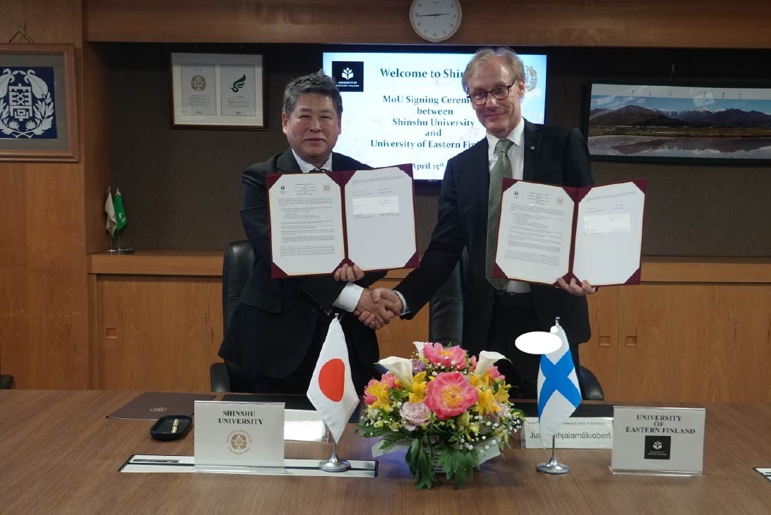 On April 15, 2026, Shinshu University signed a university-wide Memorandum of Understanding (MoU) on academic exchange with the University of Eastern Finland (UEF), Finland.