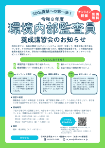 令和8年度 環境内部監査員養成講習会(学生向け)開催のお知らせ