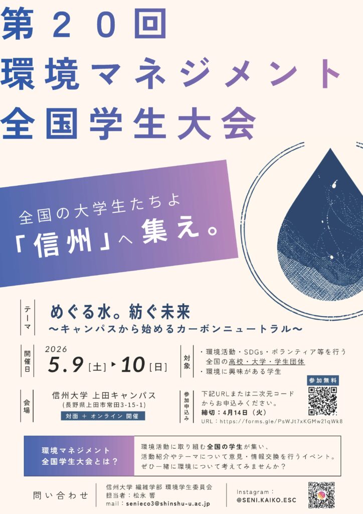 第20回 環境マネジメント全国学生大会を信州大学上田キャンパスで開催します!