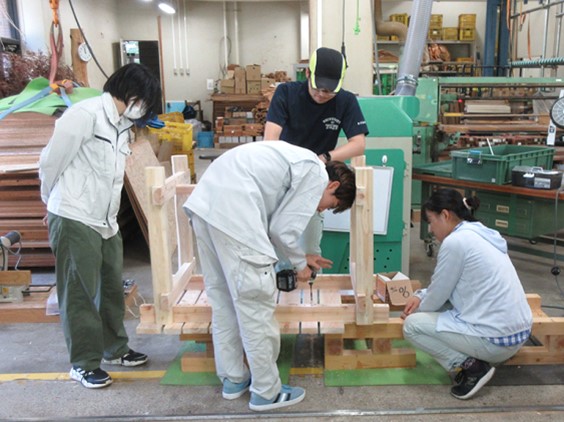 受講生3名とも最後まで熱心に演習に取り組み、作業中に体調不良になることも怪我をすることもなく演習を終えることができた。授業アンケートでは、「各講義・実習の評価」の6項目全てにおいて、「不満」および「大いに不満」の評価はなかった。そして、「自分たちで設計を考えて木取るのがおもしろかった」、「本組みの終了後にはとても達成感を感じられた」、「わかりやすい指導でよかった」などの好意的な意見が多く挙げられ、受講生にとって有意義な演習であったことがうかがわれた。「演習の内容、指導等についての要望、改善点」については特に指摘はなかったが、継続して演習内容の検証・必要に応じた見直しを行い、演習の質的改善・向上に努めることが必要と思われる。
