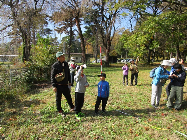 製作後は、それらの道具を持って野外へ繰り出しました。いよいよ森林体験の始まりです。