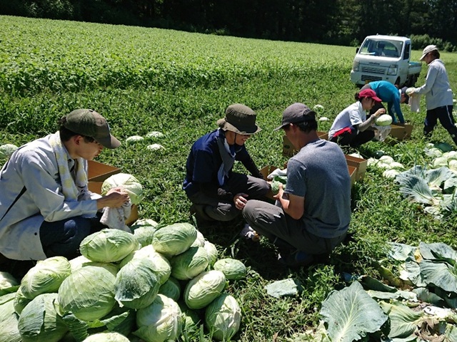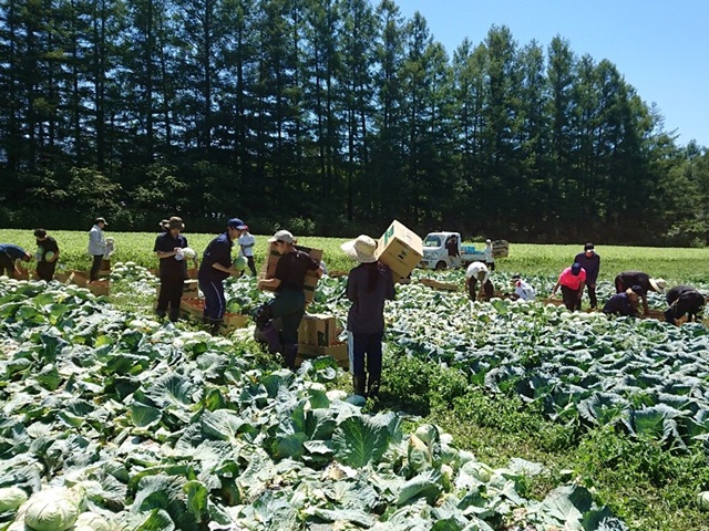 終日、キャベツの収穫と出荷のための調整作業を行い、出荷作業を行った。作業を終え、15時30分に伊那キャンパスへ向けて出発した。