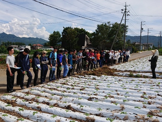 午前中に野辺山ステーションに到着し、野辺山の農業や複合農業について講義を行った。午後は、川上村にてズッキーニ農家の見学を行い、その後JA長野八ヶ岳の集荷場および白菜圃場を見学した。見学の際の説明は、ズッキーニ農家は農場主である油井氏、JA長野八ヶ岳は指導員である大槻指導員に説明していただいた。その後、平沢峠の獅子岩展望台を見学した。その後野辺山ステーションに戻り、翌日のキャベツ収穫のための段ボール作りとスイートコーンの収穫を行った。