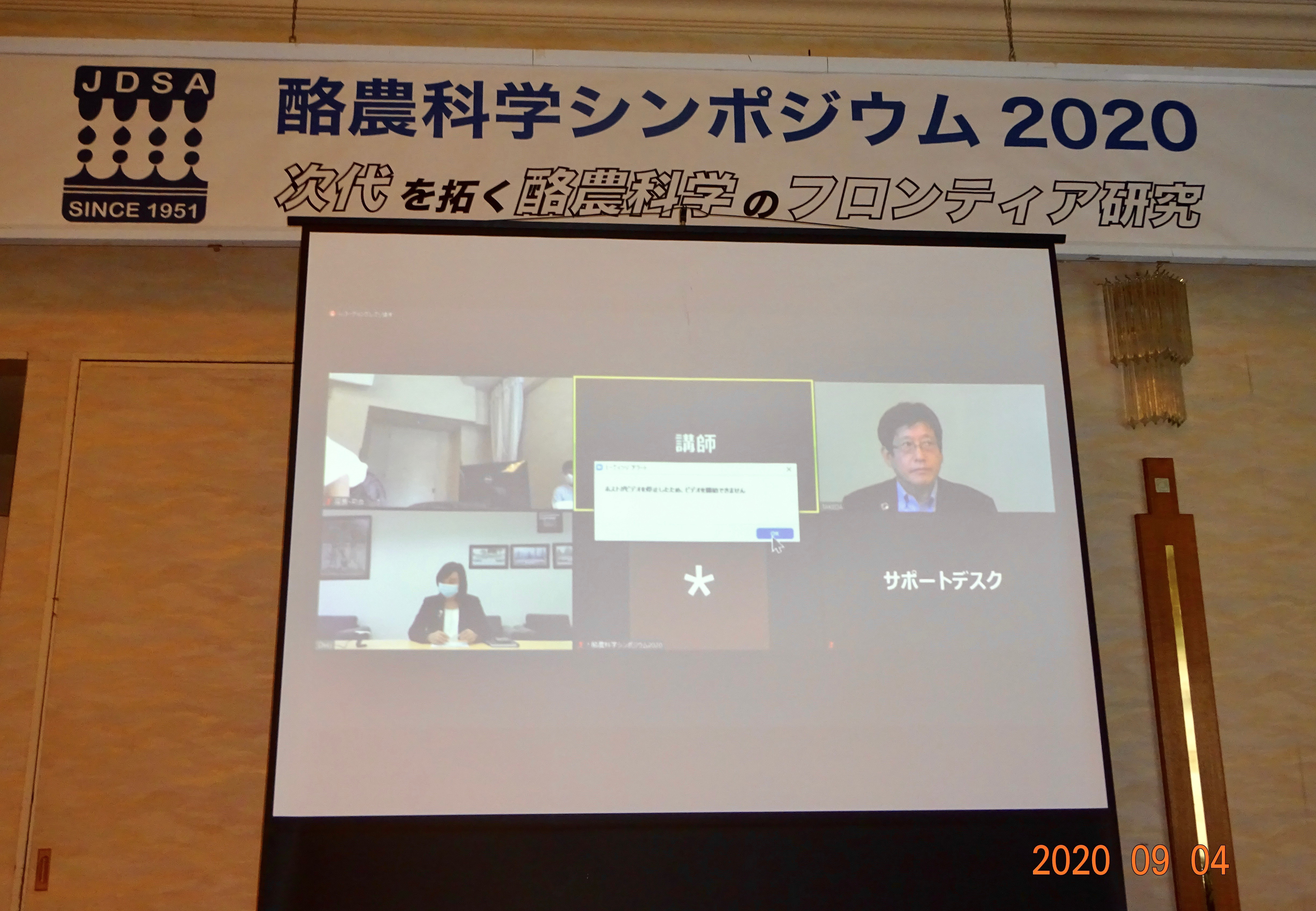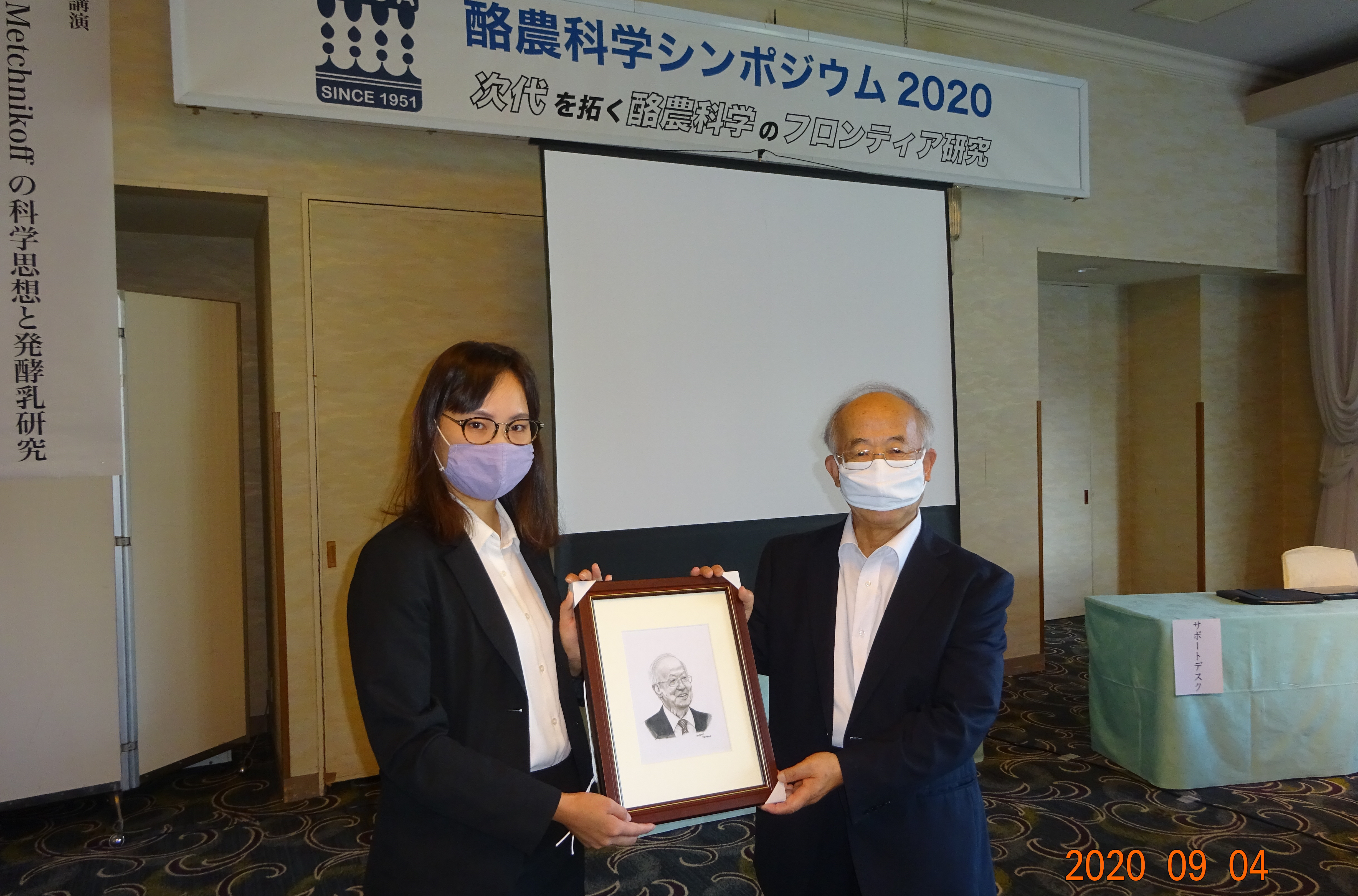 開会の辞 浦島 匡 先生(日本酪農科学会 会長・帯広畜産大学 教授) 「コロナ禍にあっても日本酪農科学会は歩みを止めない!!」浦島学会長の強いリーダーシップのもと、酪農科学シンポジウム2020を諏訪のRAKO華乃井ホテルを基地局として、オンラインライブ配信により開催しました。 基調講演 細野 明義 先生(信州大学名誉教授) 基調講演では、本学会顧問で信州大学名誉教授の細野明義先生をお迎えし、イリヤメチニコフ博士の思想に触れながら、発酵乳に関する研究についてご講演を賜りました。シンポジウムポスターには、細野明義先生の似顔絵イラスト(修士二年ツェンデーさん画)を挿入し、当日は額に納めてプレゼントさせて頂きました。
