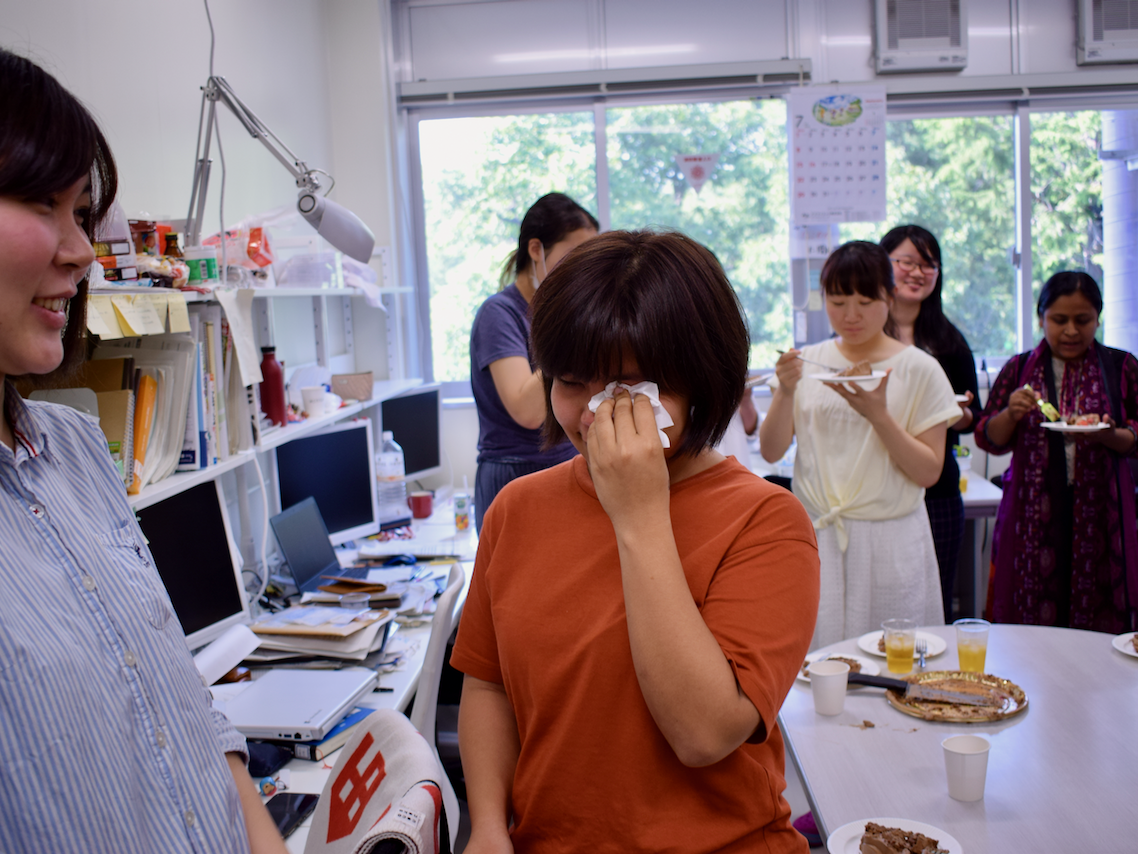 Merisaさん(スラナリー工科大学・タイ:8ヶ月間の研究生)とRadaさん(カセサート大学・タイ:2ヶ月のインターンシップ生)が7月末に帰国することになりました。研究室にてお別れ会を開催しました。