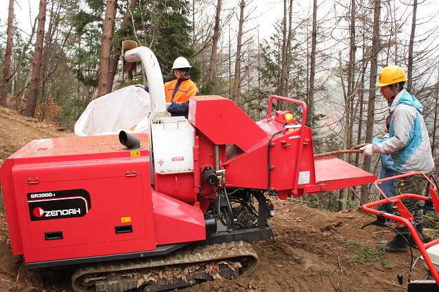 手良沢山演習林では森林科学科3年生対象の後期実習である森林利用デザイン演習(全8回)で、11月20日(金)に林内作業用重機ハーベスタを使用した伐倒作業と、薪割り、枝のチッパー作業が行われました。これまではチェーンソーを使用しての伐倒から、枝払い、玉切り、運搬までの作業が工程毎に行われていましたが、ハーベスタを使用するとその作業を一貫して効率的に進めることができます。今回は初めての操作ということで日立建機株式会社の方が講師としてご指導されていました。
