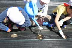 南箕輪小学校の2年生が農学部でドングリを植えました