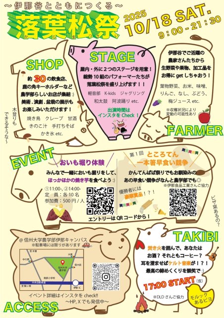 10月18日(土)に信州大学農学部第69回落葉松祭(からまつさい)を開催します。