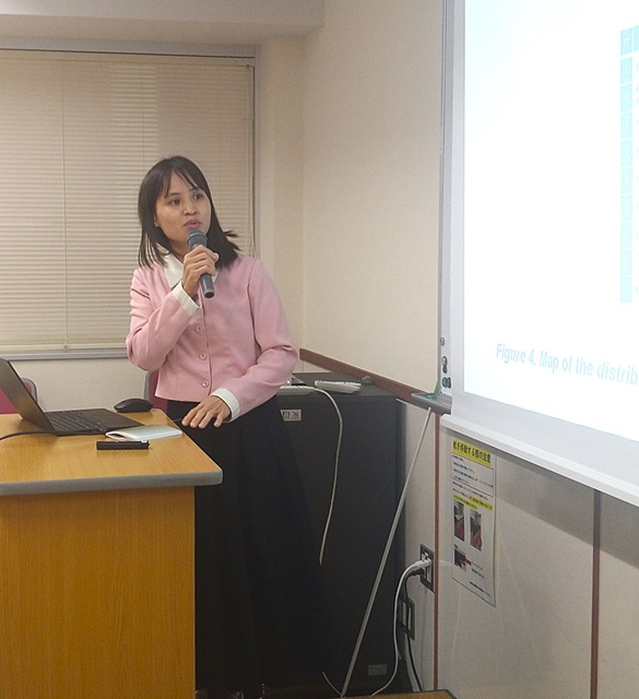 セミナーでは、まず、植物遺伝育種学研究室の松島憲一教授により、開会の辞を兼ねたPGRAsiaプロジェクトの説明として、2024年に日越共同で行われたベトナム北東部(1月)および中北部(7月)における植物遺伝資源探索について説明がなされた後、Dinh Bach Yen研究員による「バヴィ国立公園におけるザオ族の食用森林資源」、さらにNguyen Thi Tuyet研究員による「ディエンビエン省における収集遺伝資源作物の多様性」と題した講演がなされました。各講演の後には活発な質疑応答が行われました。