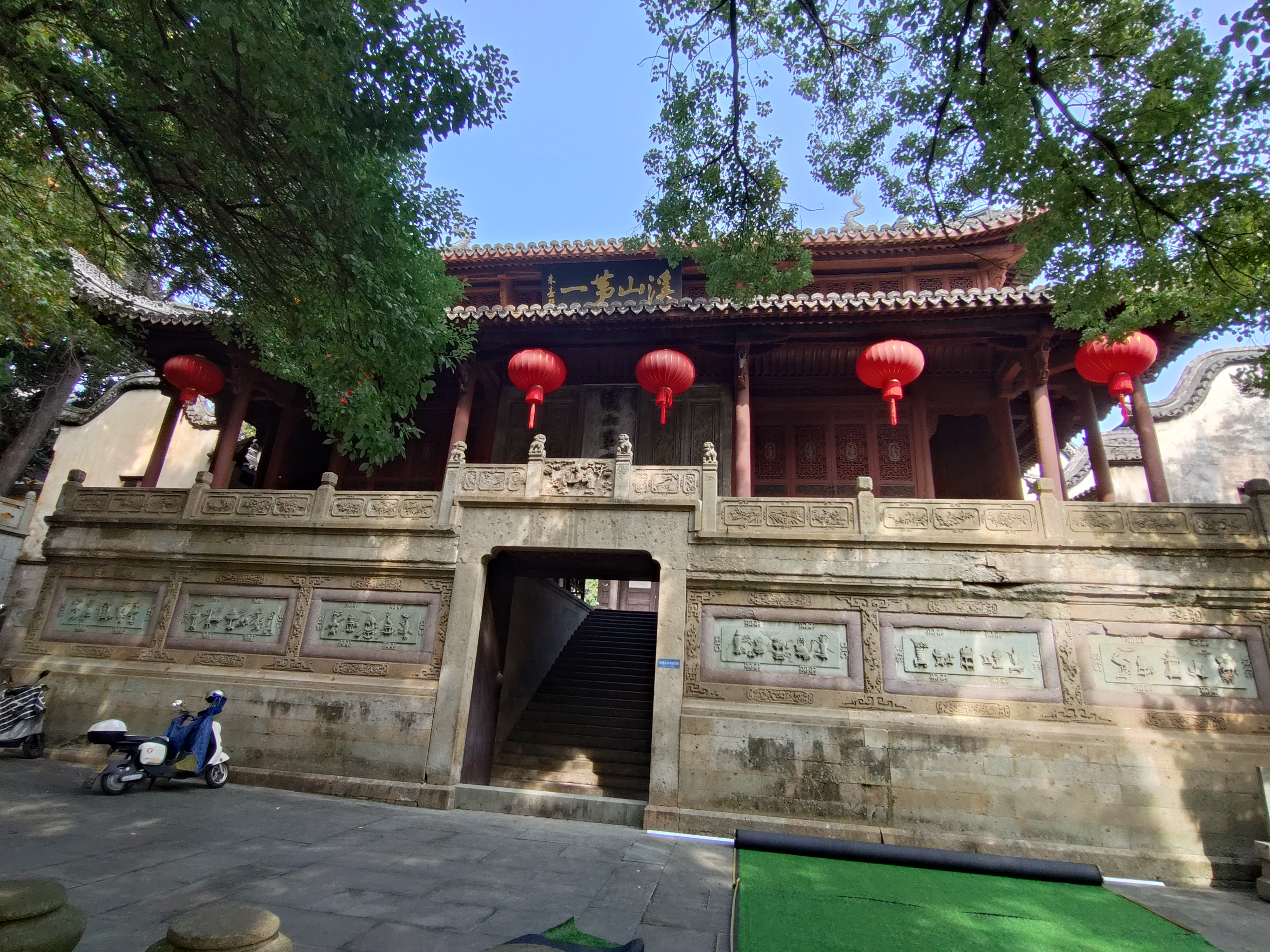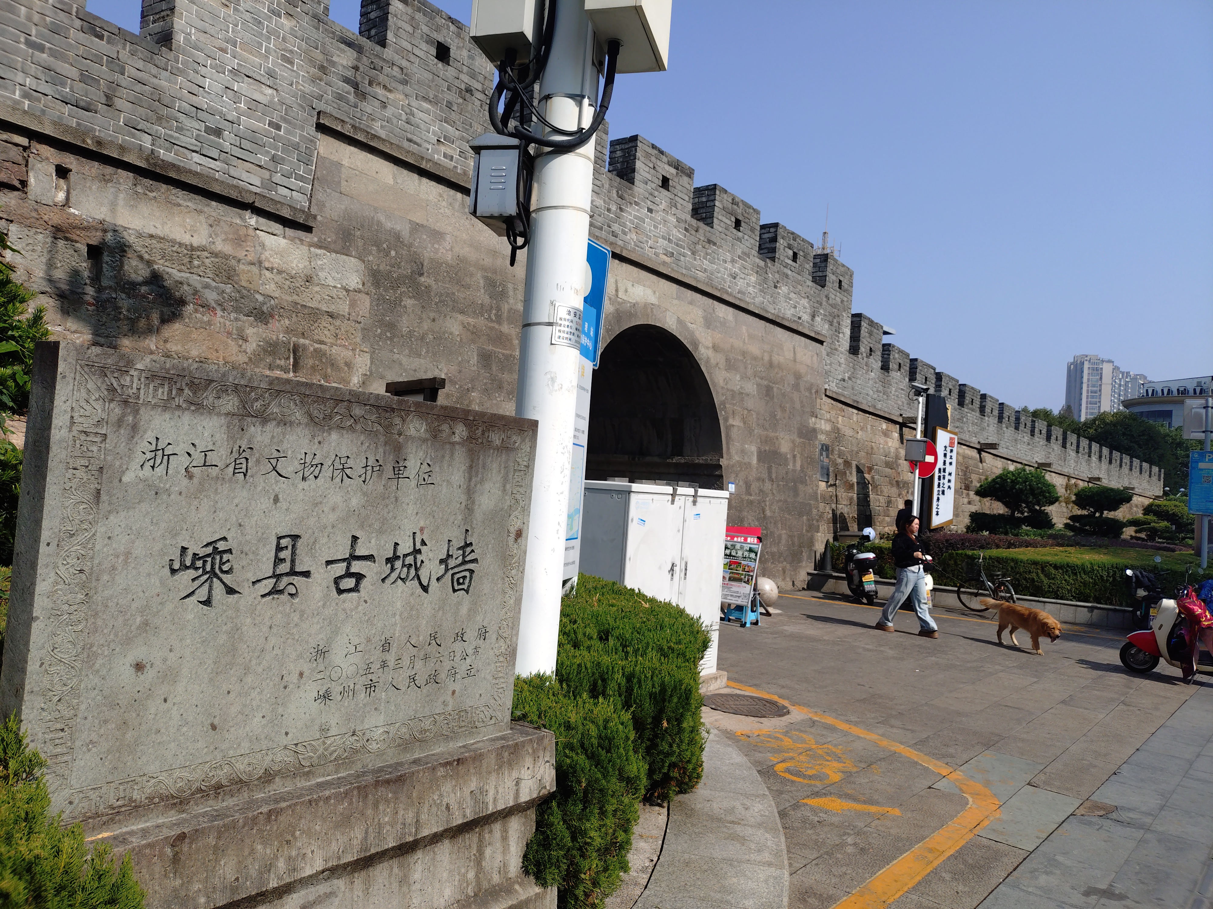 大会終了後、紹興市に属する嵊州市と嘉興市に属する平湖市に立ち寄り、思想家関連の遺跡を調査することができました。車を貸してくださった銭明先生と、運転してくださった申緒璐先生には、心より感謝申し上げます。特に、嵊州市は、陽明后学の周汝登の故郷ですので、とても貴重な機会となりました。嵊州市には20年ほど前に立ち寄ったことはあるのですが、その時は「鹿山」を見ただけで帰りました(帰らざるを得ませんでした)。今回は、明代ごろの城壁と鹿山との位置関係を現地で確認することができました。上に記した発言やインタビューで「現地を実際に訪れると、文献の読み方が深まってくる」と話したのですが、そのことを改めて体感することができました。「剡中會語」という周汝登の思想資料に、「惠安僧寺」で講会を行ったことが記されていますが、その寺は今も立派に残っていて、お坊さんたちの読経の声が響いていました。