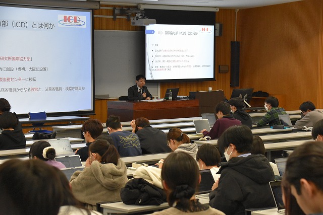 樋口 瑠惟先生(法務省法務総合研究所)の講義が行われました 2025. 12.15 現代法務Ⅰ 2025年12月15日、2025年度「現代法務Ⅰ」の第11回として、樋口 瑠惟氏(法務省法務総合研究所国際協力部 教官)の講義が行われました。 法務省法務総合研究所国際協力部 教官 樋口 瑠惟氏 講義風景