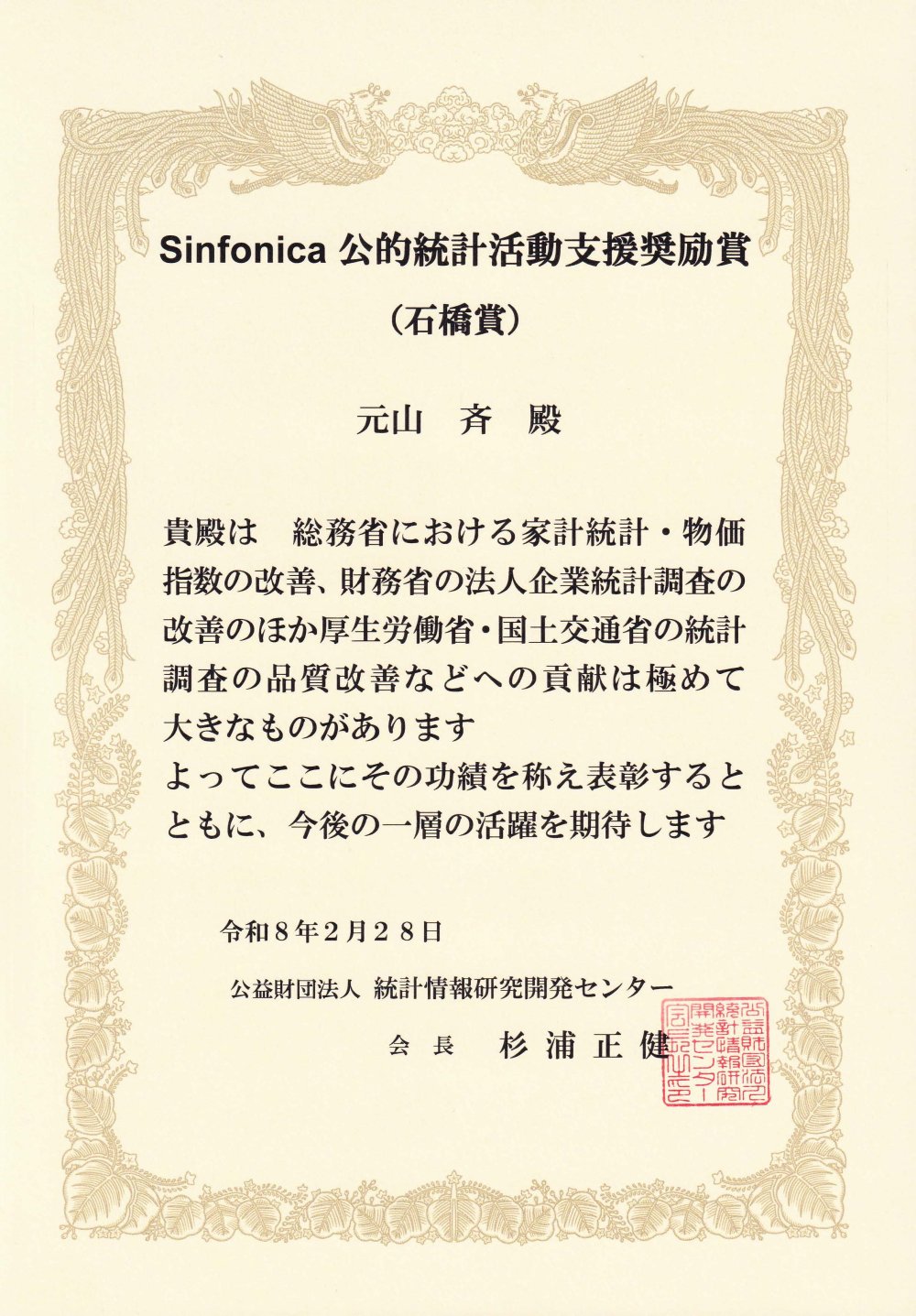 【公益財団法人 統計情報研究開発センター】公的統計活動支援奨励賞(石橋賞)