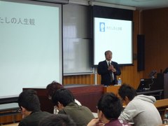 平成24年度 「経営者と企業」第5回 川上 健夫先生(サン工業(株) 代表取締役社長)の講義が行われました。