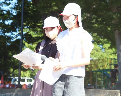 校庭に到着すると、整列の指示をする6年生たちの姿が。