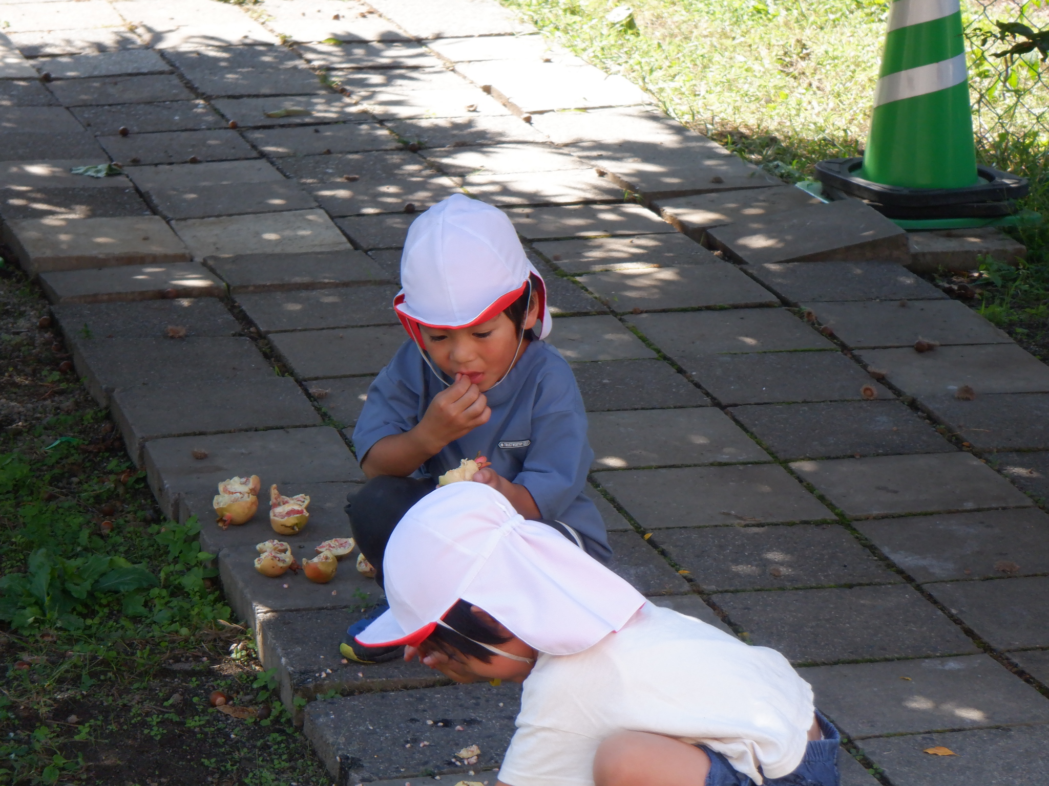 附属幼稚園には、食べられる実がなる木がたくさん植えられています。