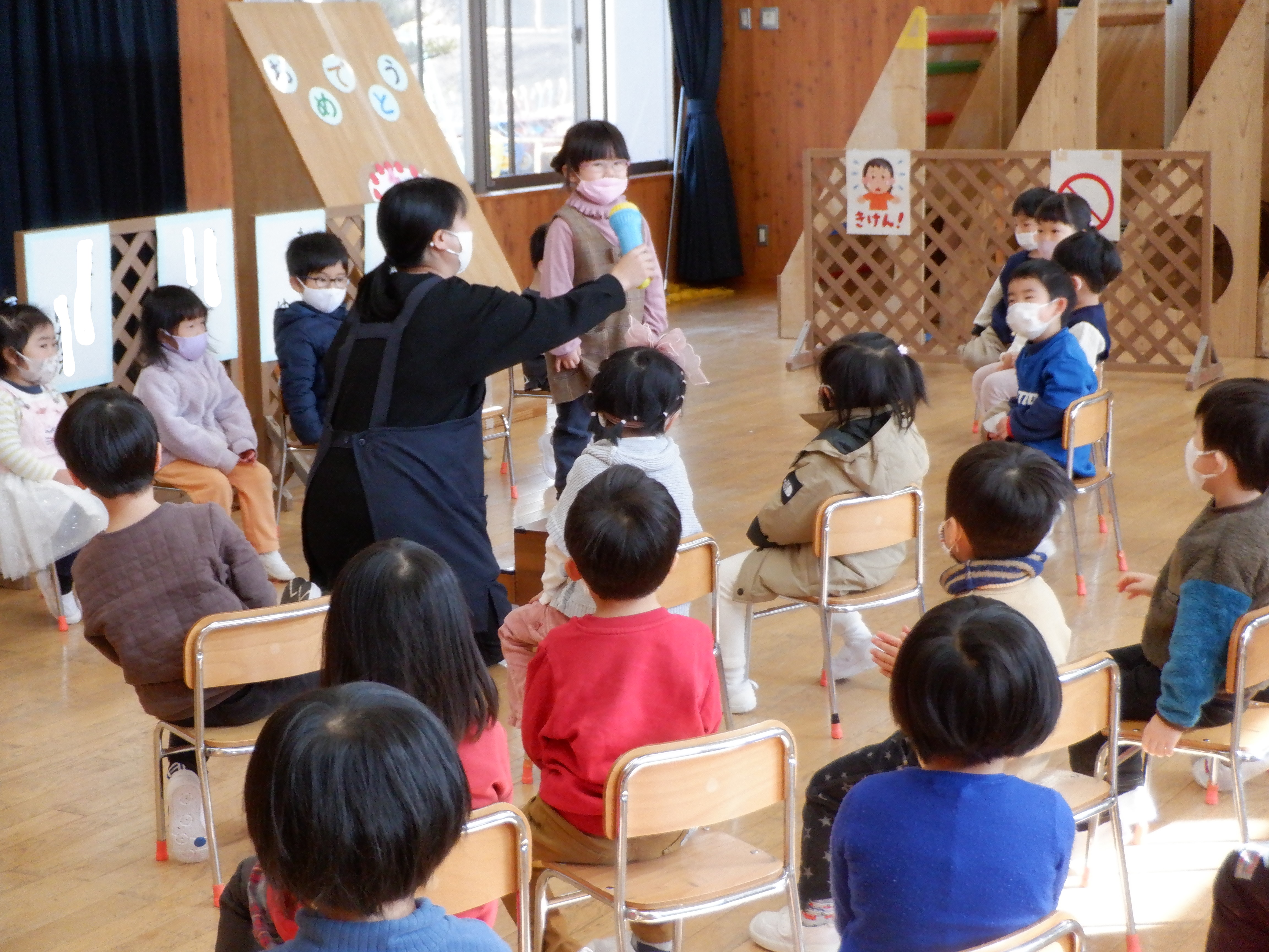 12月・1月生まれのお子さんの誕生会がありました。今回は12名のお子さんが主役として登場。