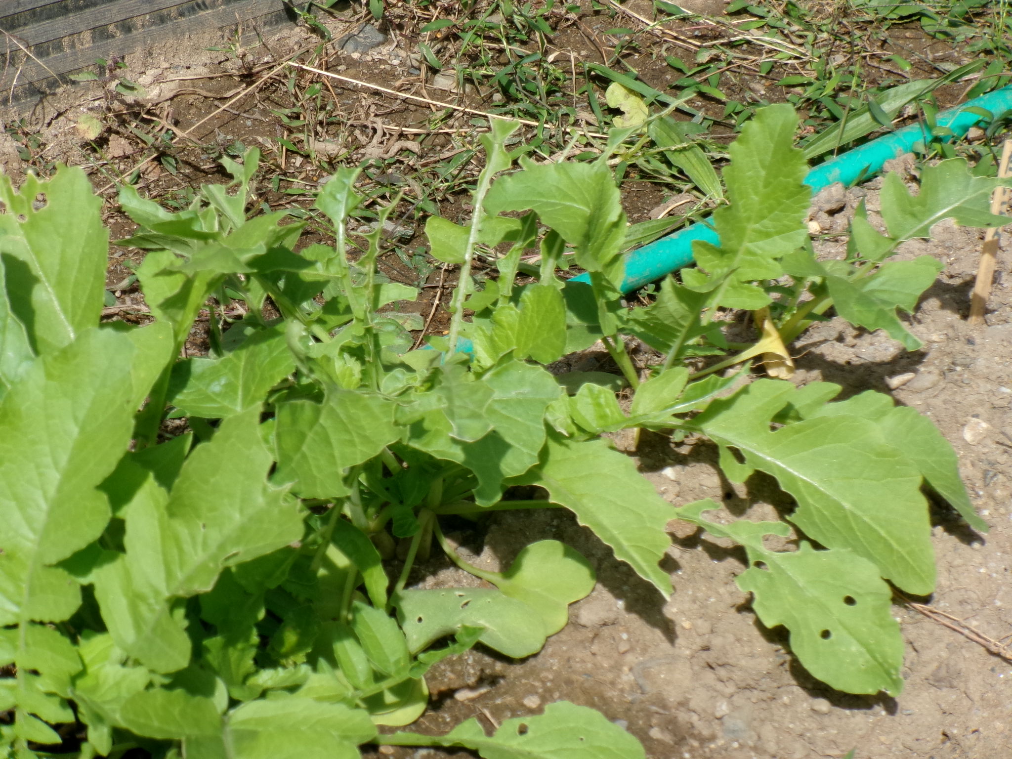 一方、以前種を蒔いて、目が出てきた大根ですが、葉っぱが虫に食べられています!
