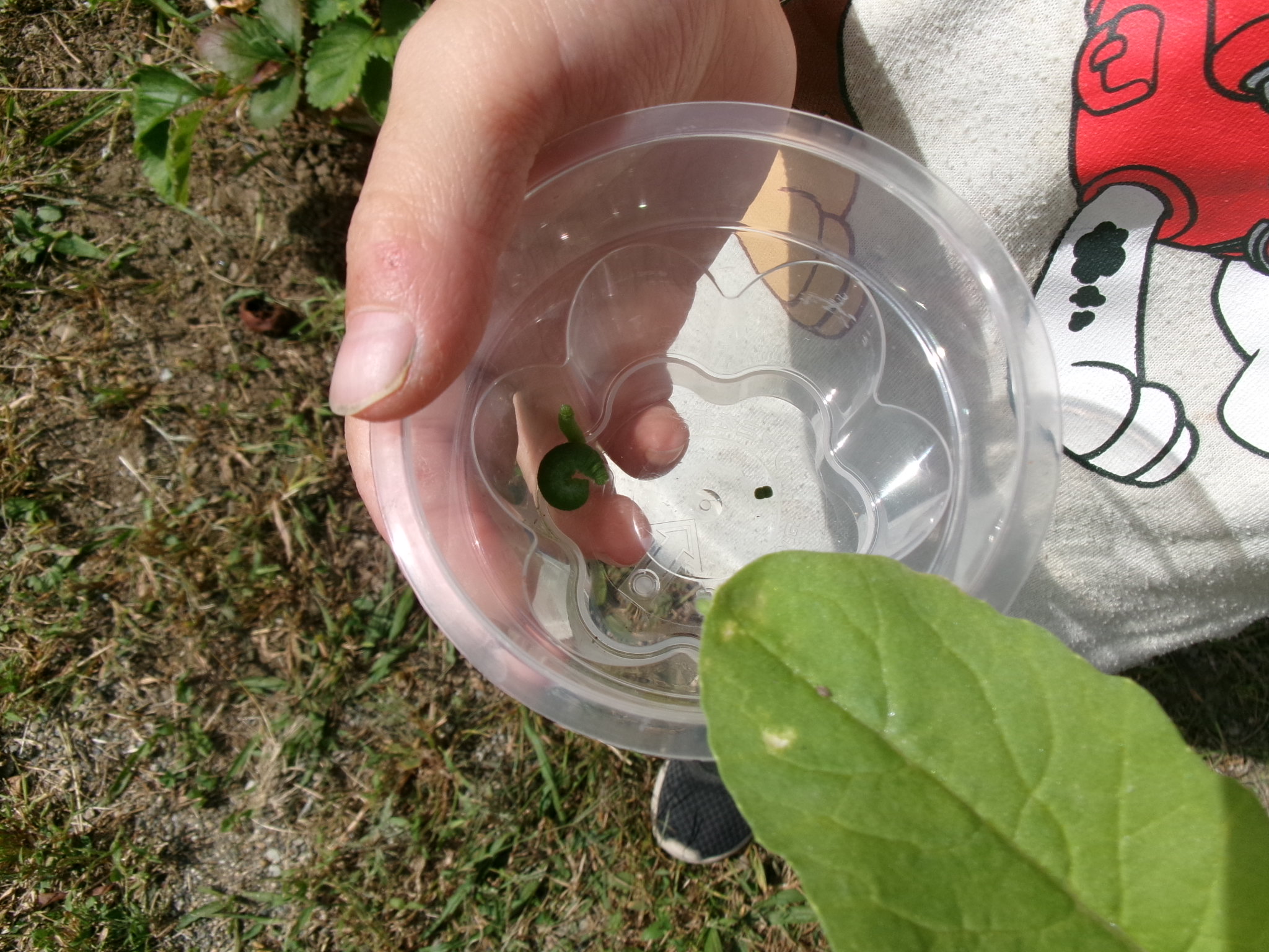 葉っぱと同じ緑で見つけにくかったのですが、4匹も見つかりました。