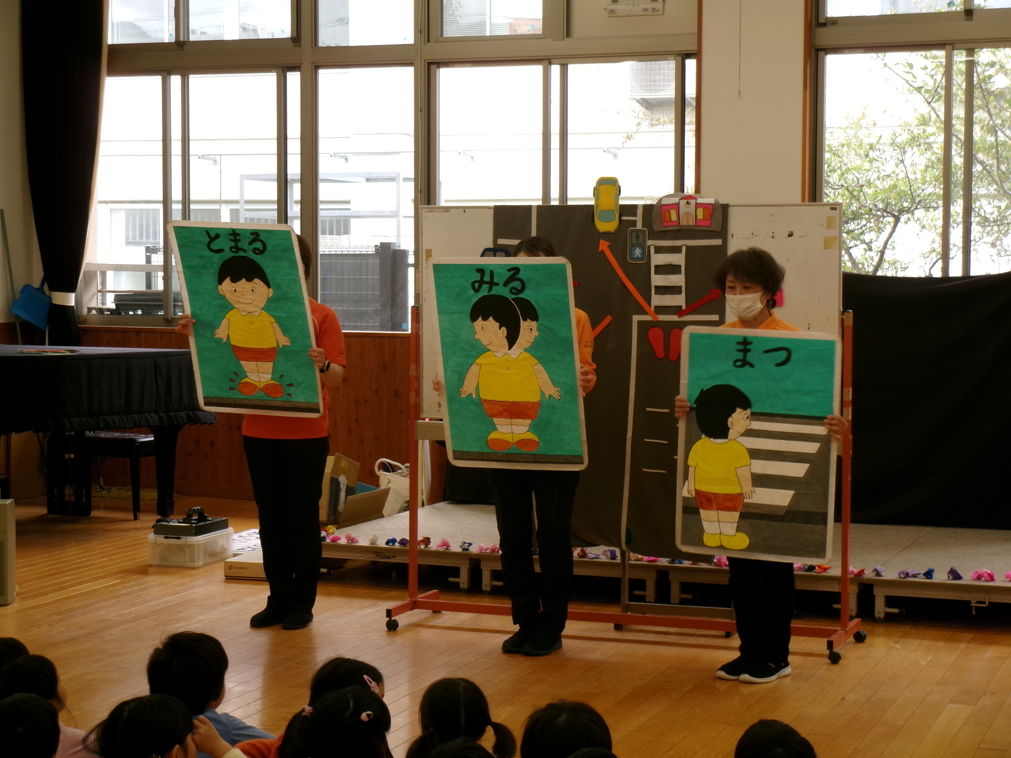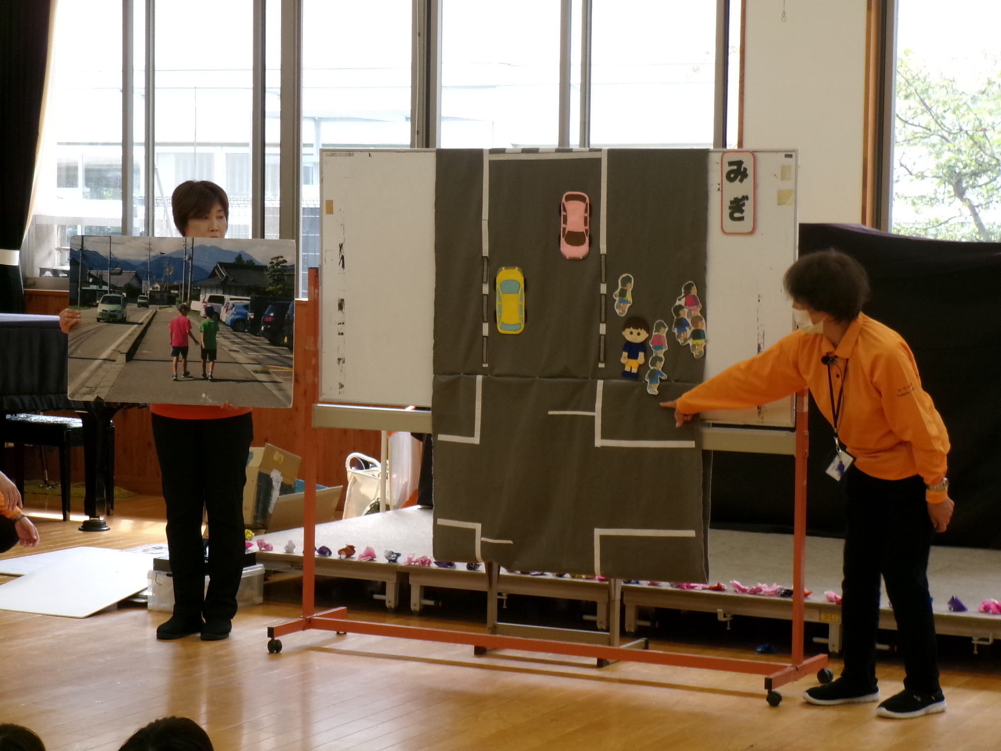警察の方や、安全協会の方、松本市の方にお越しいただき、安全な通行の仕方について教えていただきました。