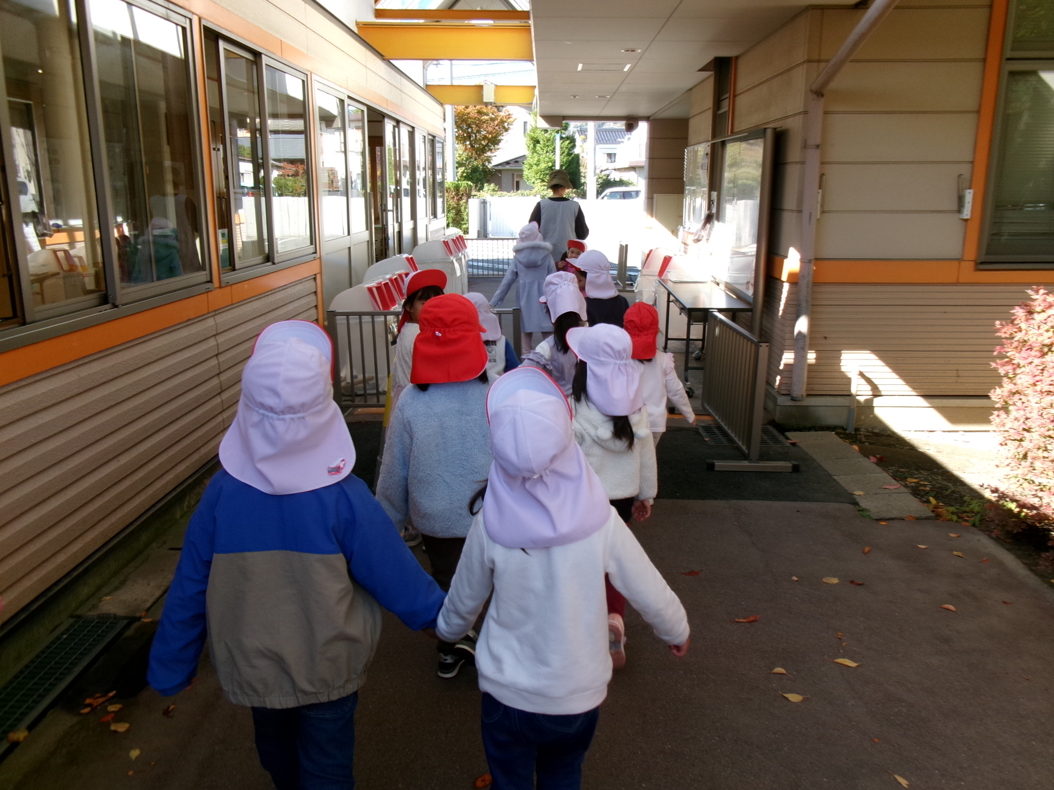 ゾーン保育期間中なので、料理ゾーンで遊んでいる子、見学に興味のある子のみの参加です。(行く行かないも子どもに選択権があります)